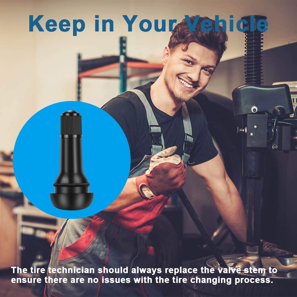 When replacing a tire, a tire technician should always replace the valve stem to ensure there are no issues with the tire changing process. Valve stems over time will age which could cause a flat tire. The TR413 valve stem is the most popular rubber valve stem used on a car. Features & Specs - 5pcs Black tubeless tire valves - For TR413 tires - .453 rim hole - 1.25'' long How to Use 1. Deflate tire and breakdown tire off the rim 2. Remove old valve stem 3. Insert new stem from inside rim until it snaps into place 4. Reinstall tire and inflate to the recommended psi''