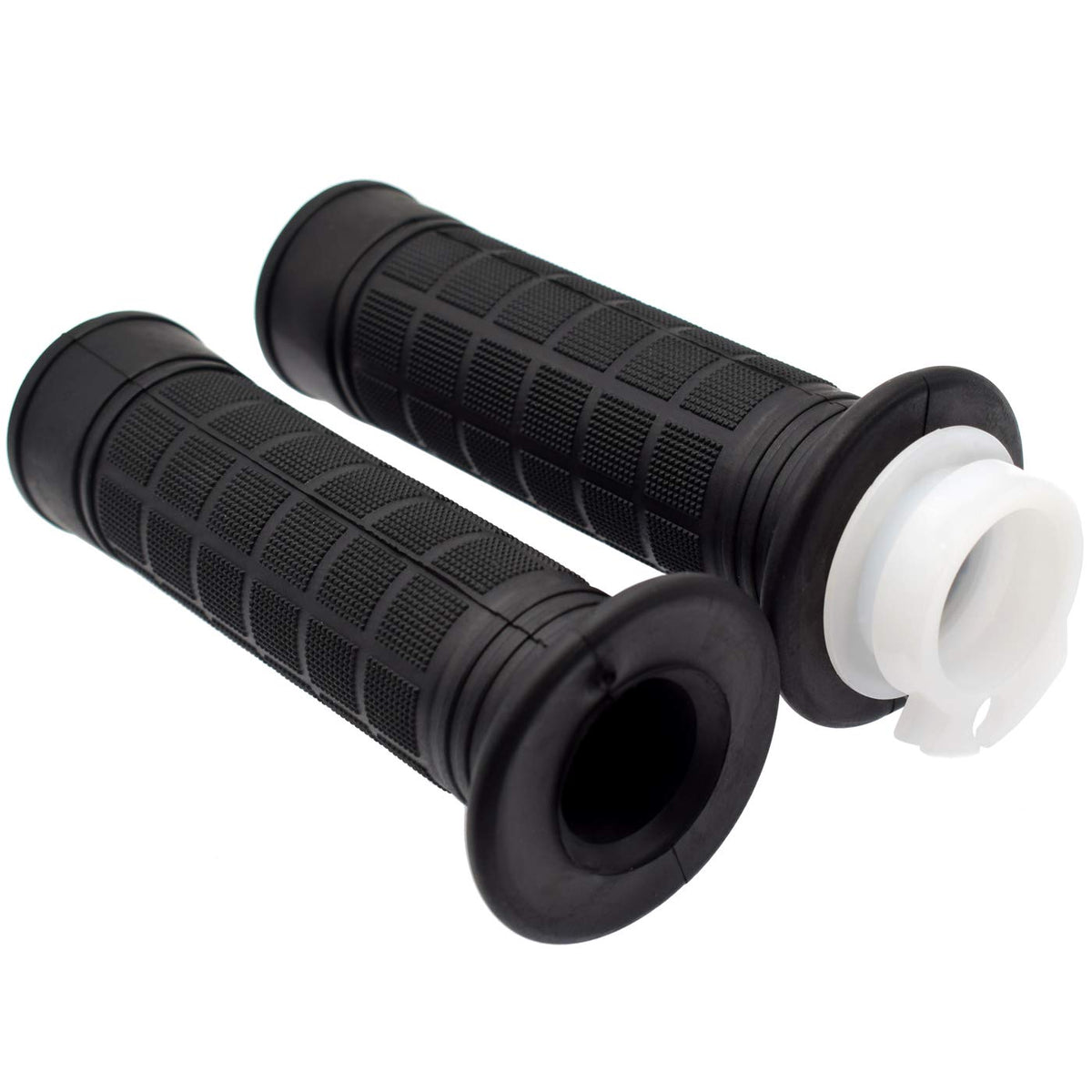 Q: Are the handlebar grips adjustable for different sizes?A: The handlebar grips are designed to fit standard sizes; one grip measures 115mm and the other 125mm, with a hole diameter of 22mm (7/8 inch), suitable for most motorized bicycles.
