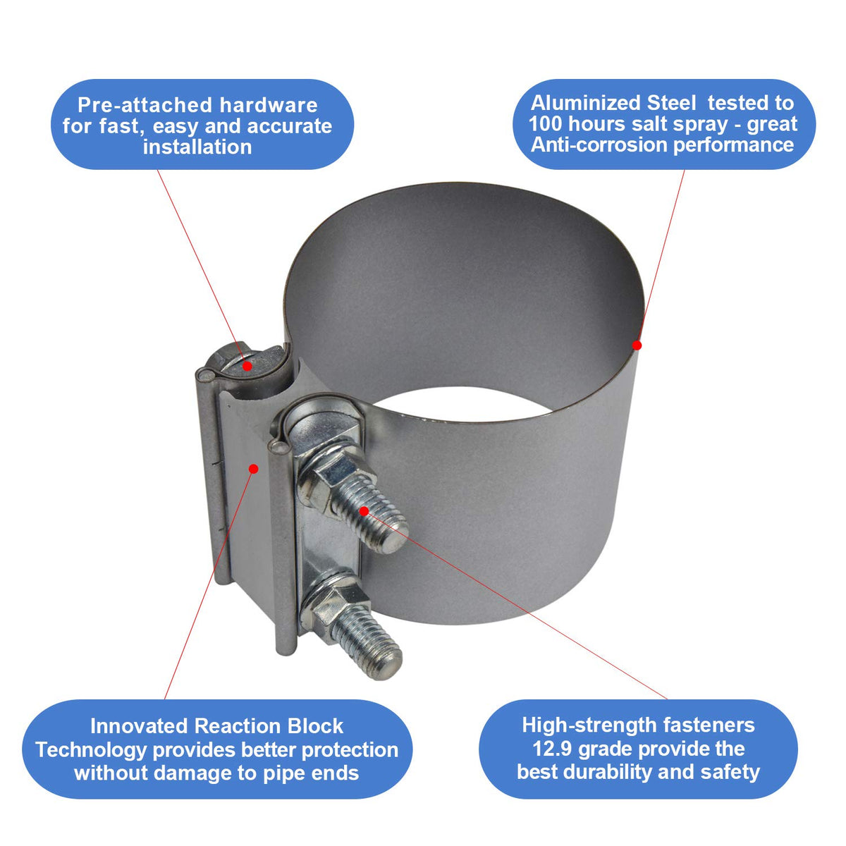 Roadformer 3 Butt Joint Exhaust Band Clamp - Aluminized Steel For 3 Od Exhaust Pipe, Muffler, Elbow And Exhaust Tubing Connection