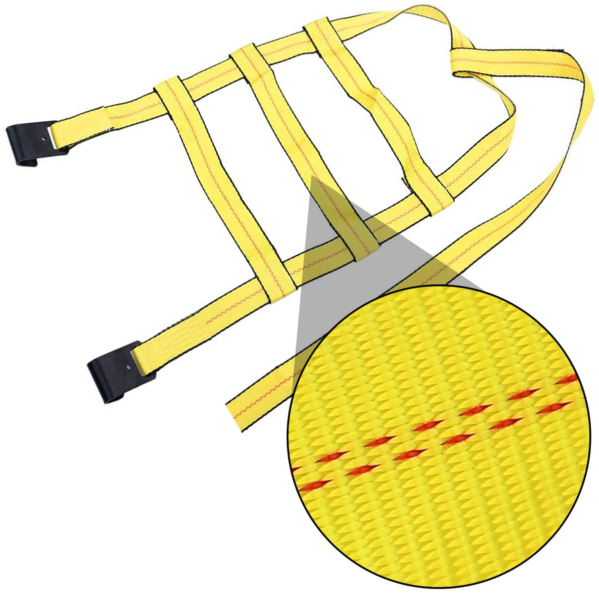 Q: What materials are the Robbor Tow Dolly Basket Straps made from?A: The straps are made of industrial-grade polyester webbing, featuring reinforced stitching and heavy-duty steel hooks, which provide maximum hauling strength and durability.