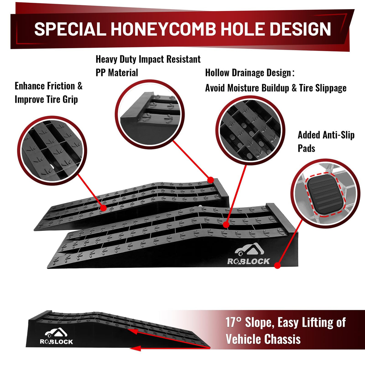 Roblock Heavy Duty Car Ramps For Oil Changes And Jack Support, Portable Low Profile Car Ramps For High Lift, Vehicle Ramps For G