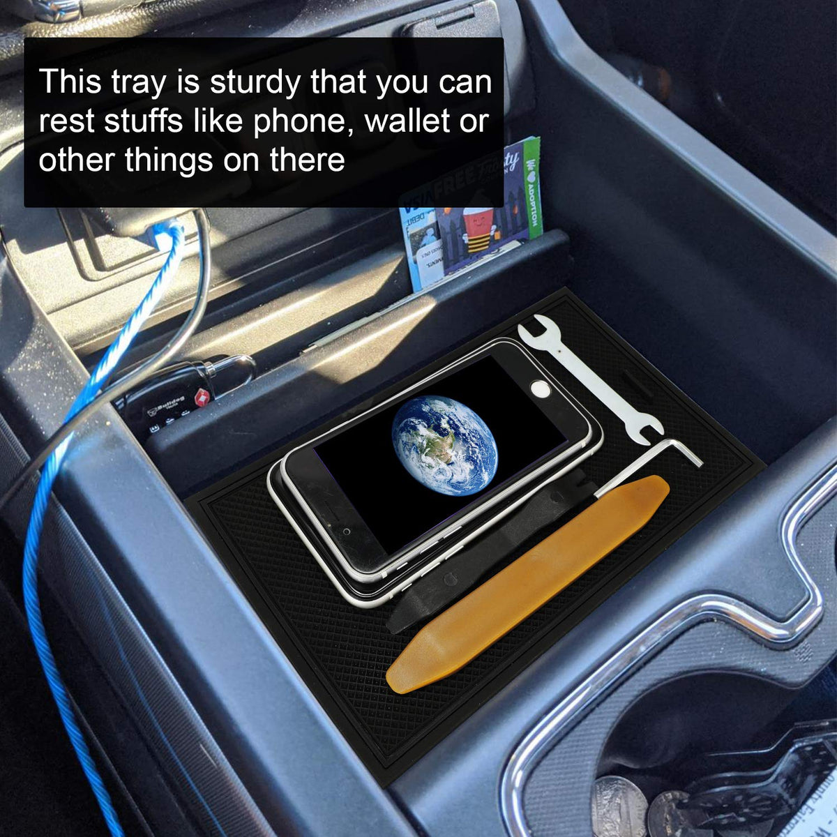 Q: How does the organizer enhance the functionality of the center console?A: The organizer creates a hidden compartment for additional storage, helping to keep your center console tidy and organized while providing easy access to essential items.