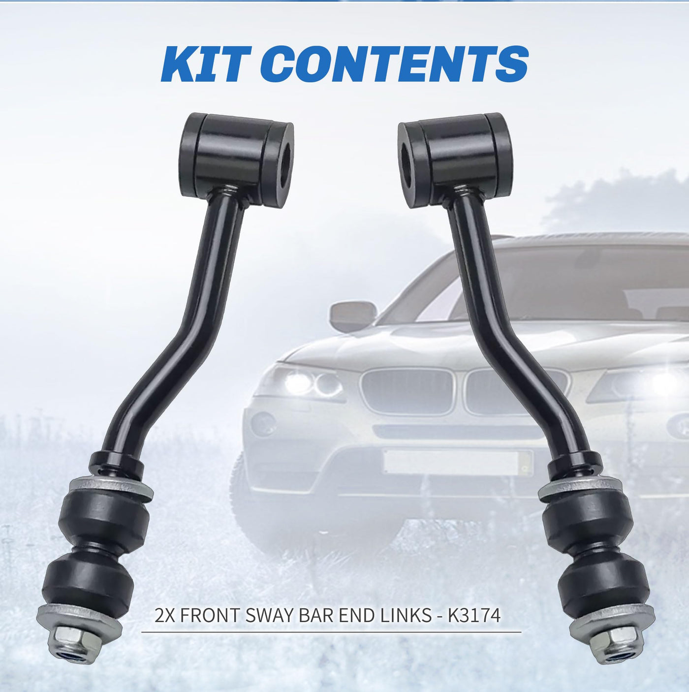 Sway Bar Link KIT Contents:2X Stabilizer Sway Bar Link Front Left Right - K80258Sway Bar Link Front Suitable Vehicle Type:For 1999 Daewoo Nubira All Series Suspension front sway Bar linksFor 2007 2008 2009 2010 Chrysler Sebring All Series Suspension front sway Bar linksFor 2007 2008 2009 2010 2011 2012 2013 2014 2015 2016 2017 Jeep Compass All Series Suspension front sway Bar linksFor 2007 2008 2009 2010 2011 2012 2013 2014 2015 2016 2017 Jeep Patriot All Series Suspension front sway Bar linksFor 2008 2009 2010 2011 2012 2013 2014 Dodge Avenger All Series Suspension front sway Bar linksFor 2007 2008 2009 2010 2011 2012 Dodge Caliber All Series Suspension front sway Bar linksFor 2008 2009 2010 2011 2012 2013 2014 2015 2016 2017 Mitsubishi Lancer All Series Suspension front sway Bar linksFor 2007 2008 2009 2010 2011 2012 2013 2014 2015 2016 2017 2018 2019 Mitsubishi Outlander All Series Suspension front sway Bar linksFor 2011 2012 2013 2014 2015 2016 2017 2018 2019 Mitsubishi Outlander Sport All Series Suspension front sway Bar linksFor 2000-2001 Mazda MPV All Series Suspension front sway Bar linksFor 2001 2002 2003 Mazda Protege All Series Suspension front sway Bar linksFor 2002-2003 Mazda Protege5 All Series Suspension front sway Bar links