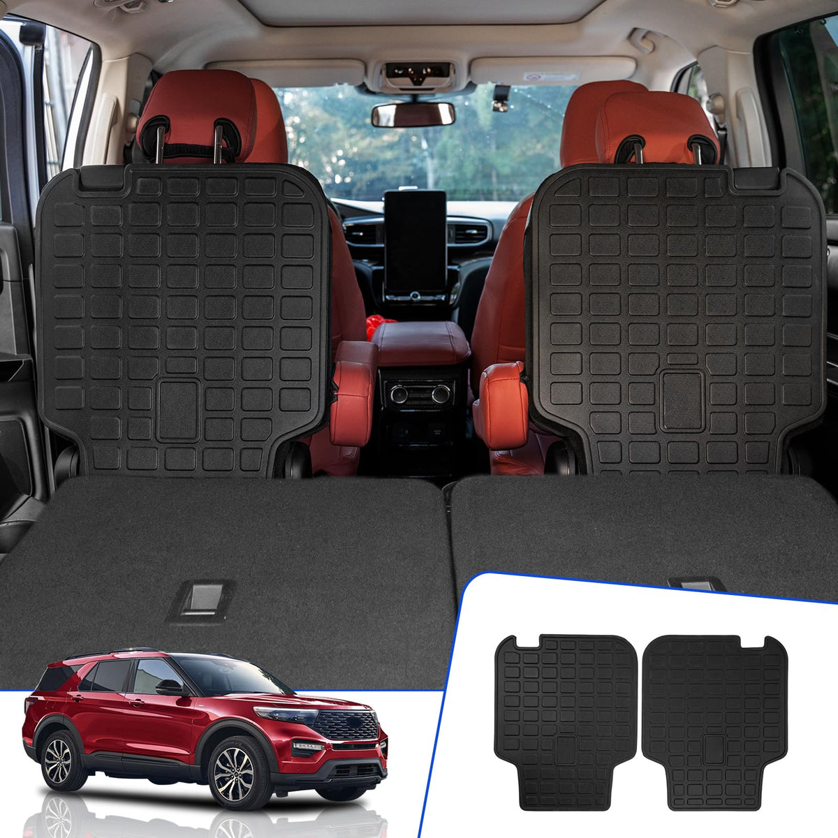 Rongtaod Back Seat Cover Protector Compatible with 2020-2025 Ford Explorer 6 Seats Back Seat Cover Protector All Weather Trunk Mat Cargo Mat Cargo Liner 2024 Explorer Accessories (Backrest Mats)