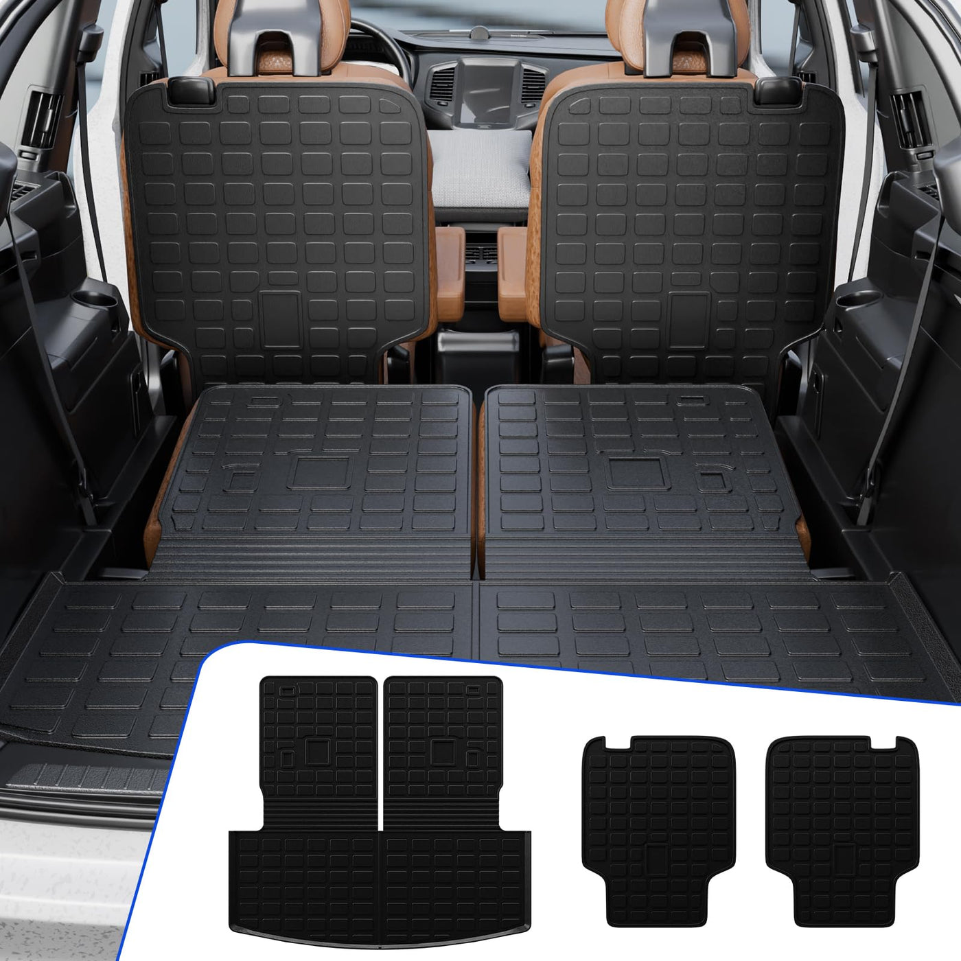 Rongtaod Cargo Mat Compatible With 2020-2025 Ford Explorer 6 Seats Cargo Liner Tpe Seat Back Mats Rear Trunk Mat 2024 Explorer A