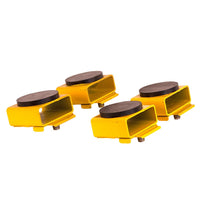 Set of four round polymer adapters, provides 2 1/2 inch additional clearance. Fits any frame engaging Rotary lift manufactured since 1973. Comes with adapter rack that bolts on the side of the lift for quick accessibility of adapters.