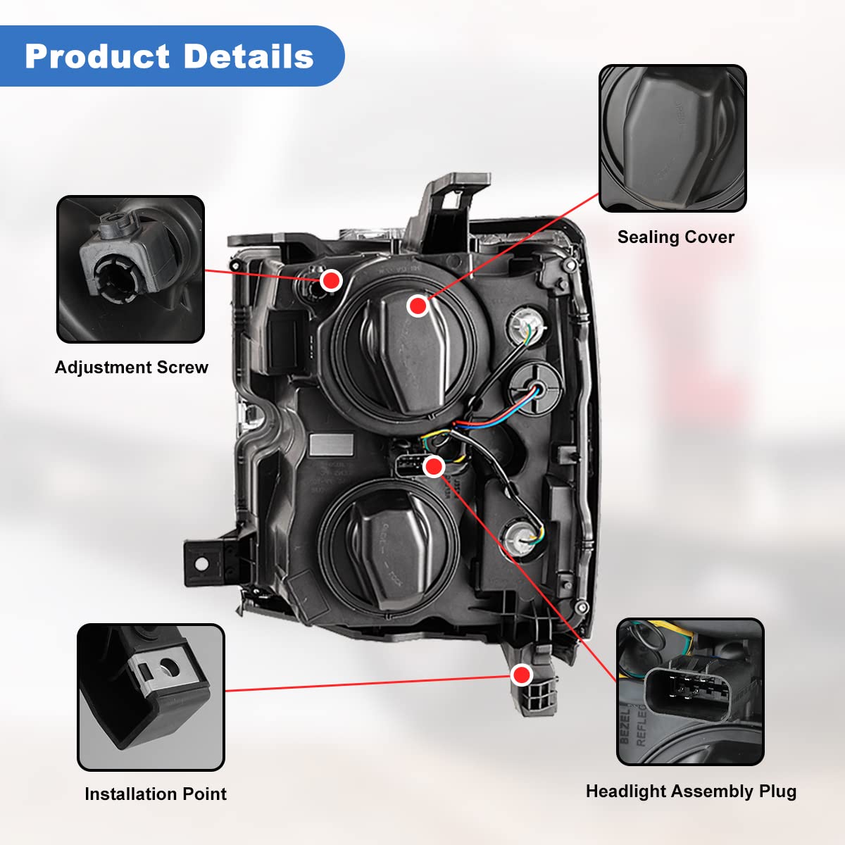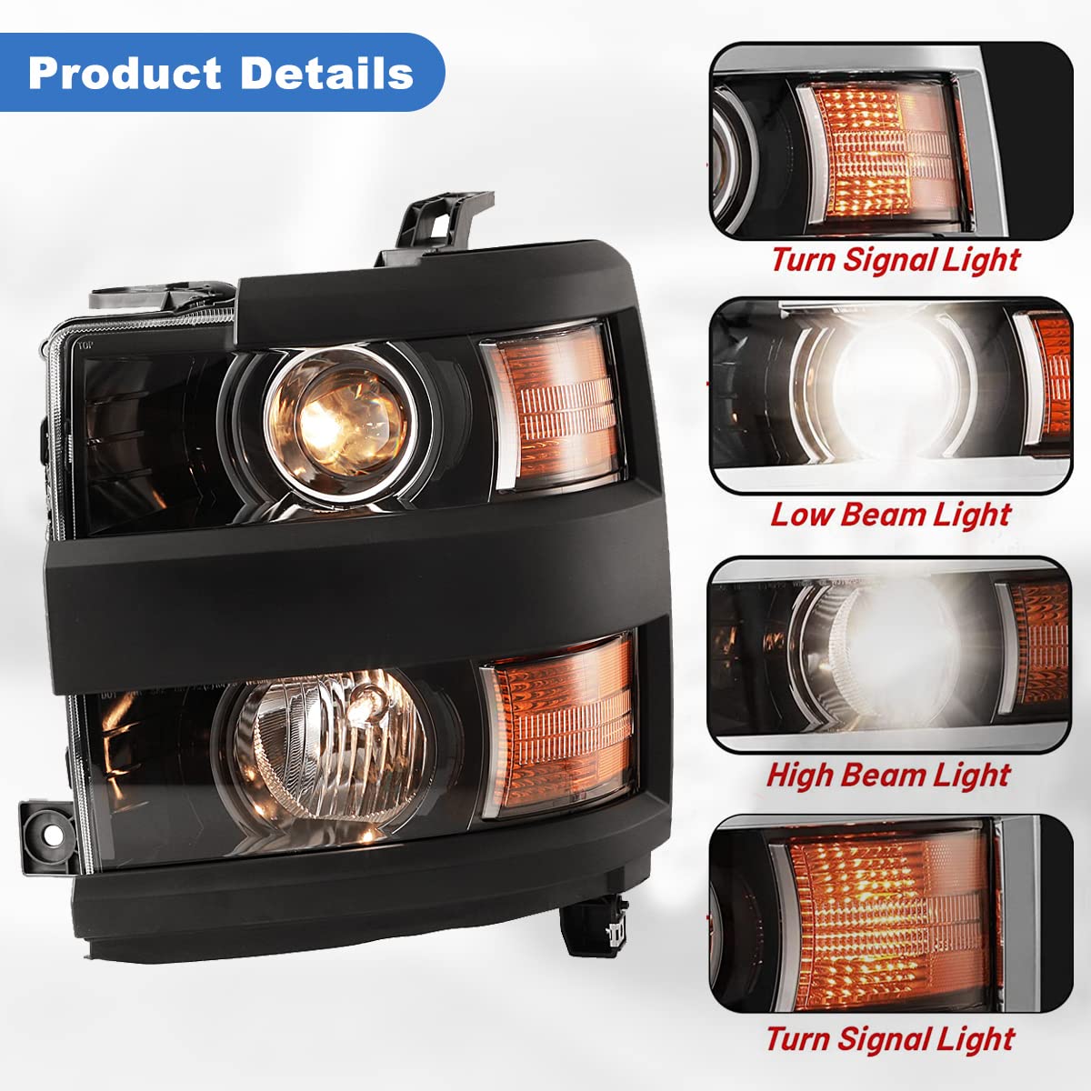 Roxx Headlight Assembly Fit For 2015-2019 Chevy Silverado 2500&3500, Low/High Beam Headlight Replacement For 2015-2019 Chevy Silverado 2500/3500, Black Housing With Clear Lens