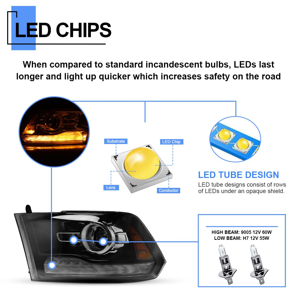 Roxx Headlight Assembly For 2013-2018 Dodge Ram 1500/2500/3500 With Turn Signal Light Function,13-18 Dodge Ram Headlight Replacement (Only Fit For Vehicle Factory Projector Lamps)