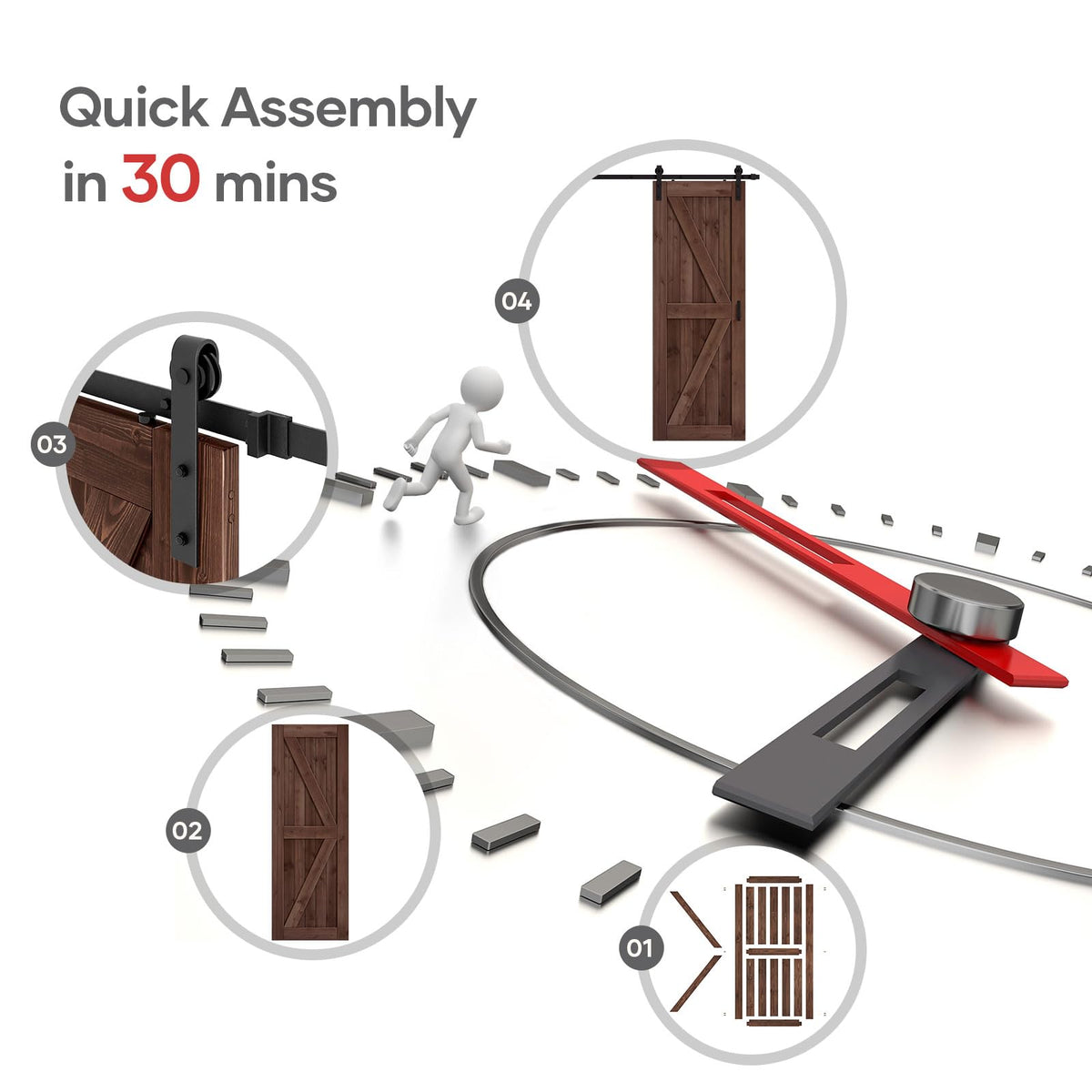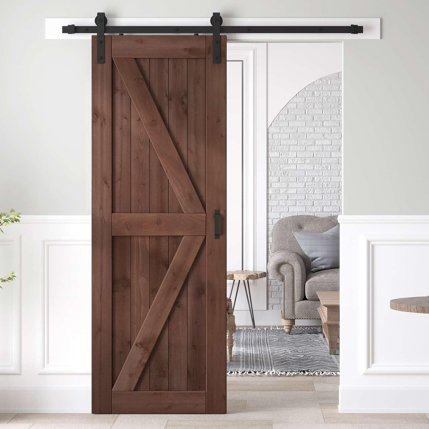 Roymelo 32X84 Inch Sliding Barn Wood Door Slab With 5.5Ft Hardware Kit And Handle, Coffee, K Shape, Simple Diy Assembly