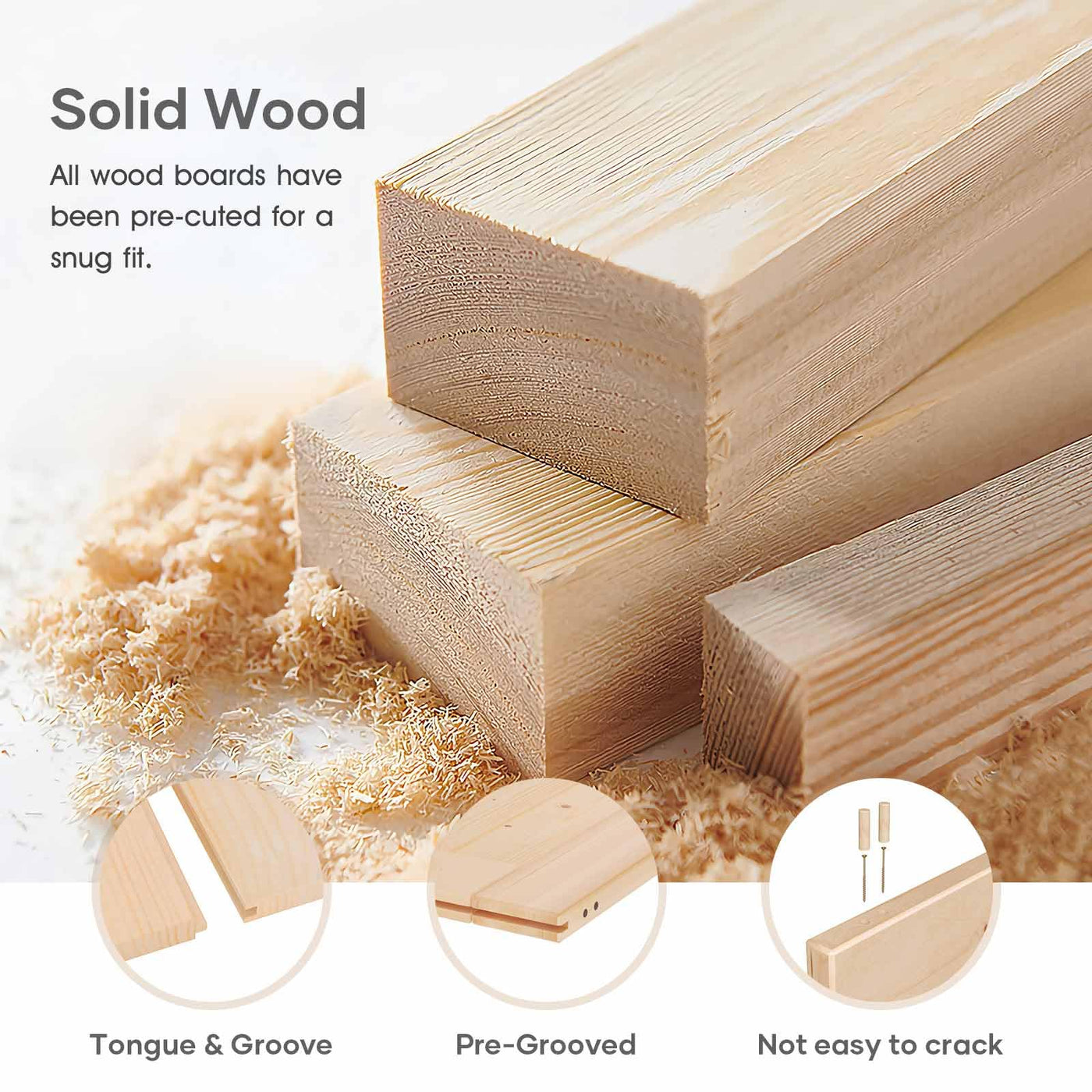 Q: What materials are used in the ROYMELO Sliding Barn Door?A: The ROYMELO Sliding Barn Door is made from high-quality spruce wood, which is known for its strength and durability. The wood's surface features a clear, beautiful grain and a fresh smell, ensuring a natural aesthetic for your space.