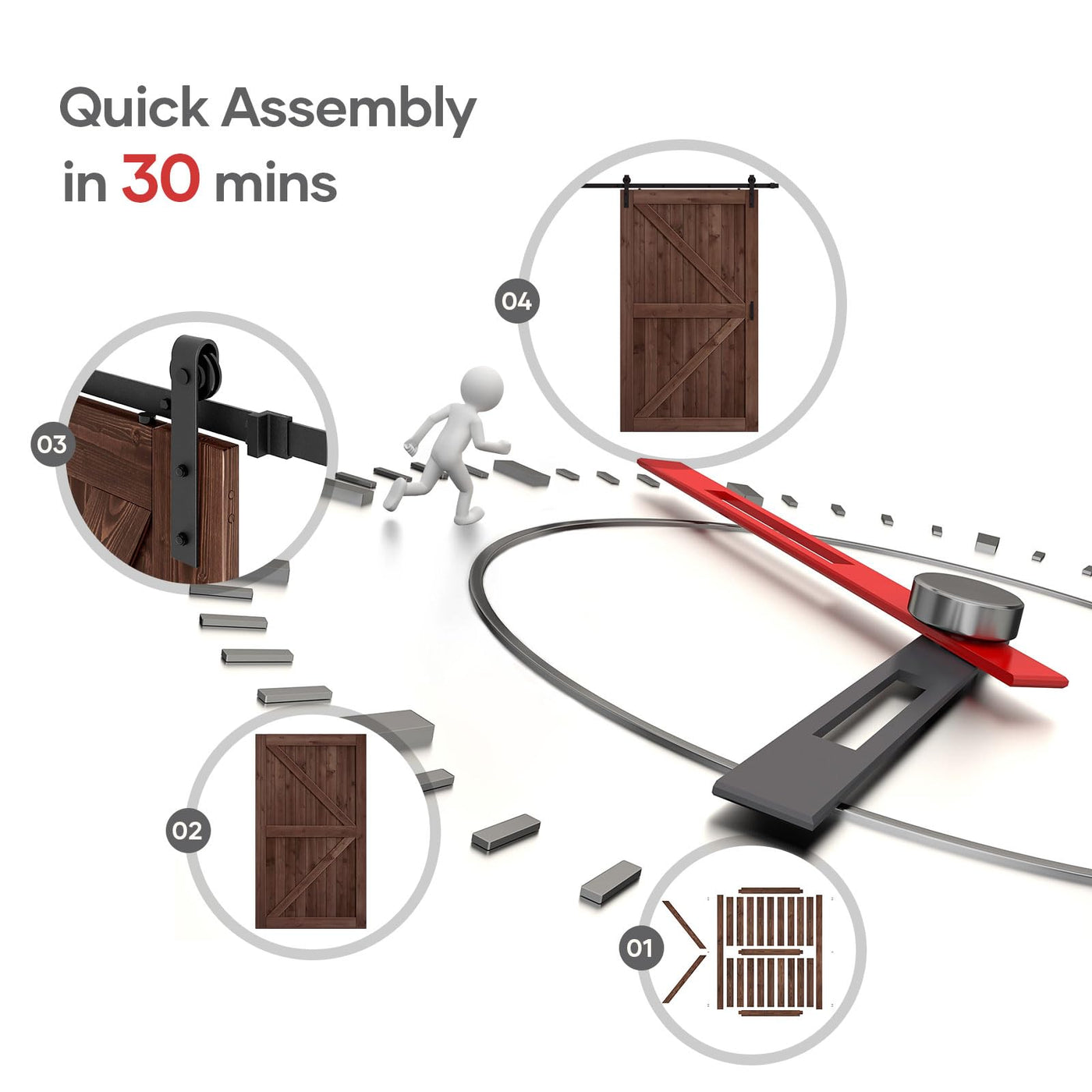 Q: Is the barn door easy to assemble?A: Yes, the ROYMELO barn door is designed for simple DIY assembly. The package includes pre-cut and pre-drilled wood boards along with a barn door hardware kit and detailed instructions, allowing you to assemble it easily, similar to building blocks.