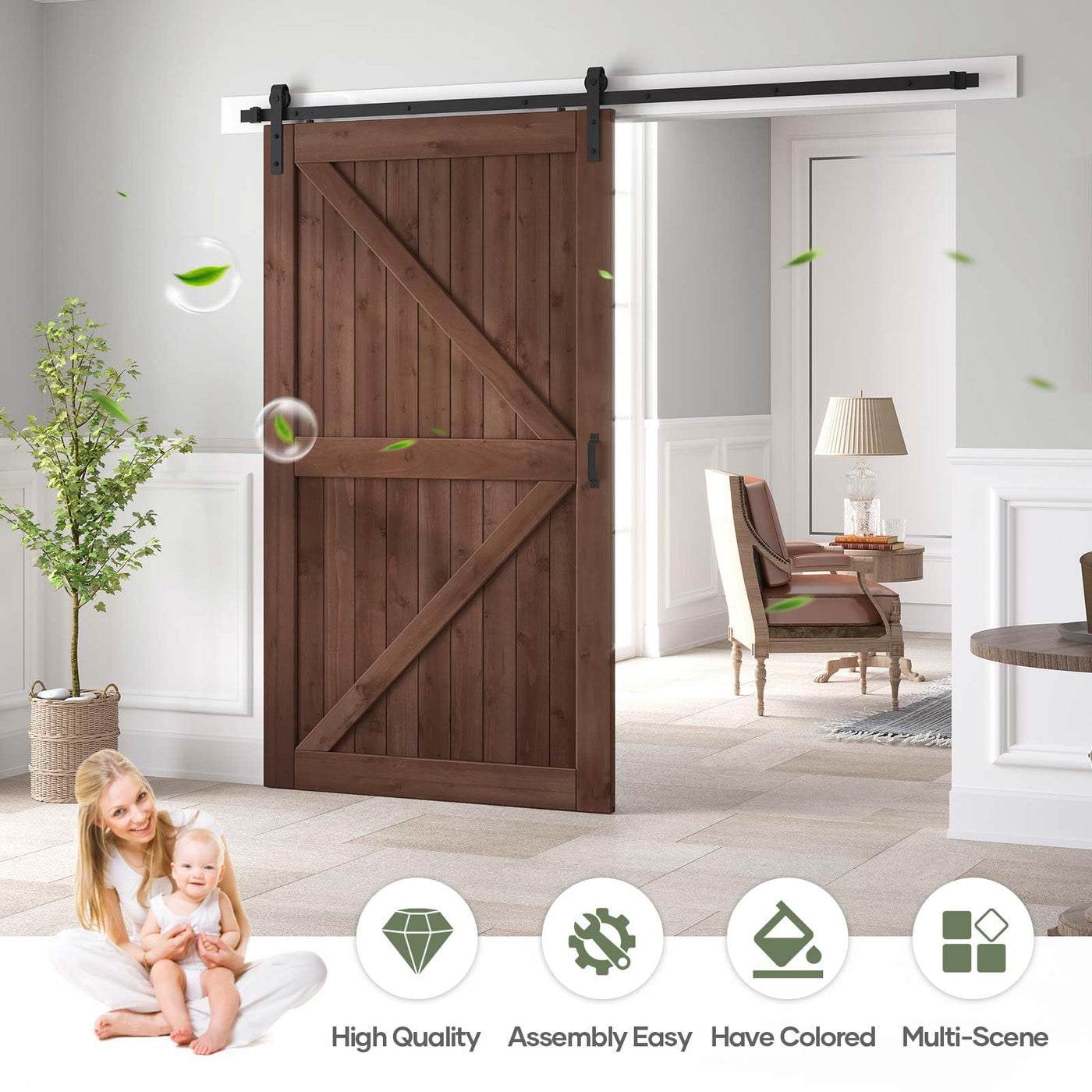 Roymelo 48X84 Inch Sliding Barn Wood Door Slab With 8Ft Hardware Kit And Handle, Coffee, K Shape, Simple Diy Assembly