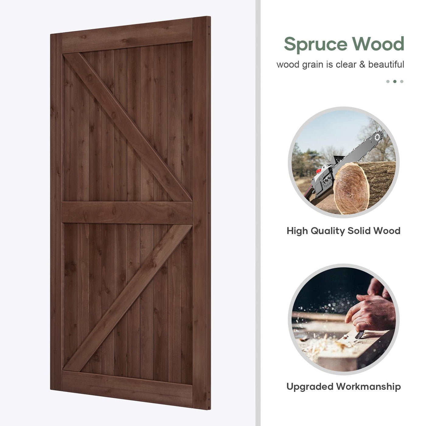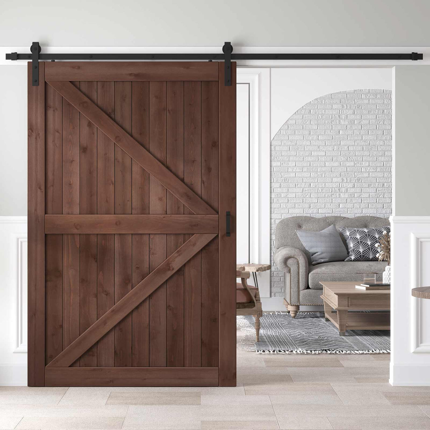 Roymelo 54X84 Inch Sliding Barn Wood Door Slab With 9Ft Hardware Kit And Handle, Coffee, K Shape, Simple Diy Assembly