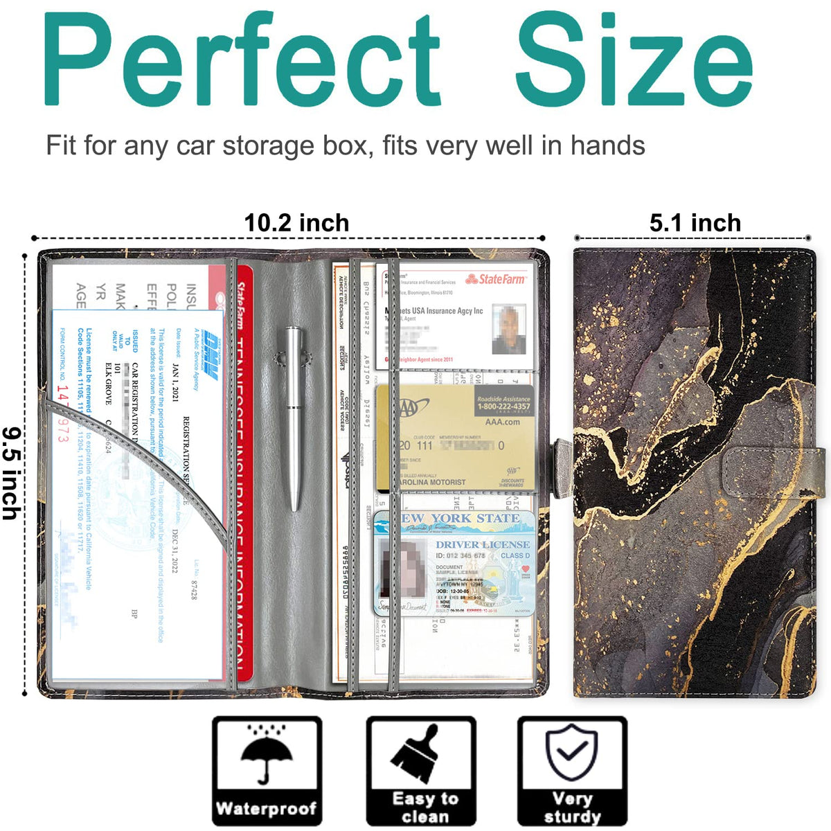 Q: Is the RSAquar Car Registration Holder suitable for both men and women?A: Yes, the RSAquar Car Registration Holder is designed with a stylish Marble Black&Gold finish that appeals to both men and women, making it a versatile accessory for any vehicle.