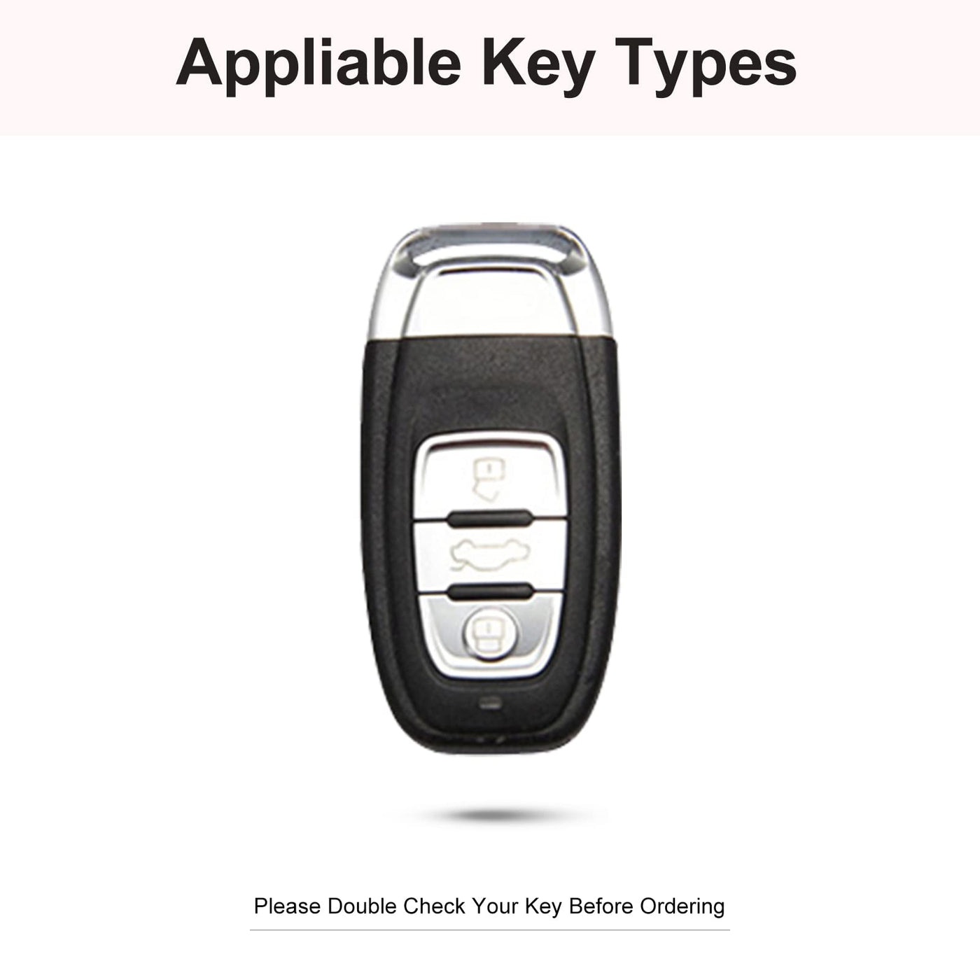 Ruabiban Compatible Audi Key Fob Cover, Pink Genuine Leather Crystal Case For Audi A4 A5 A6 A7 A8 Q5 Q7 S3 S4 S5 S6 S7 S8 Sq5 Rs