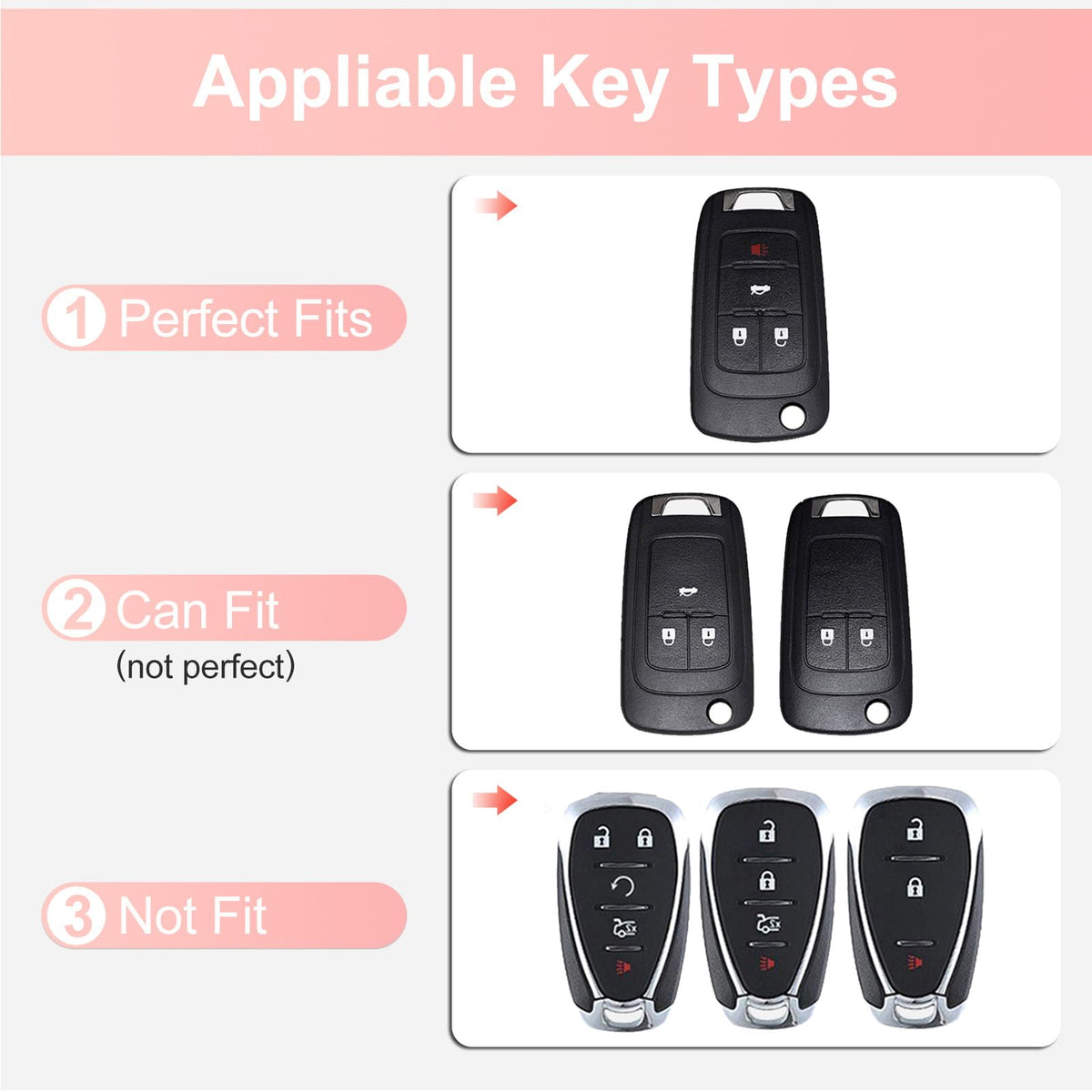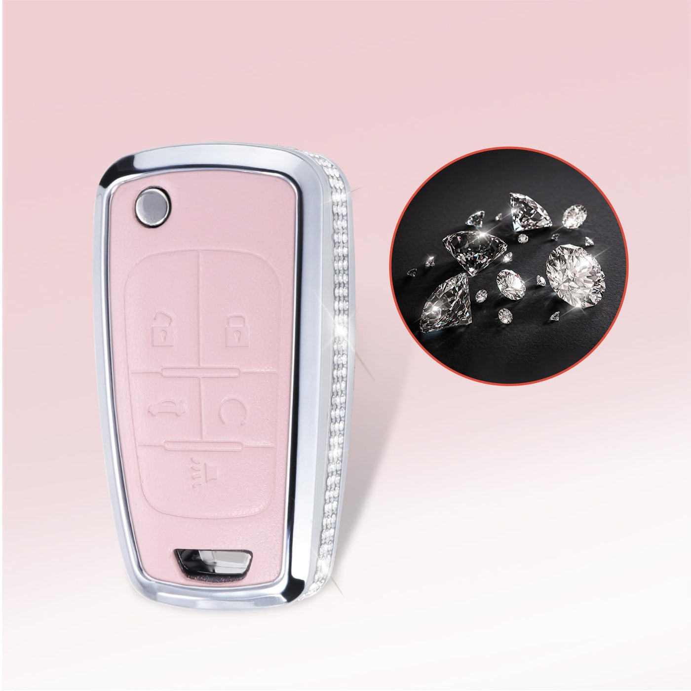 Ruabiban For Chevy Key Fob Cover With Keychain, Pink Leather Crystal Key Case Protection Shell Compatible With Chevrolet Equinox