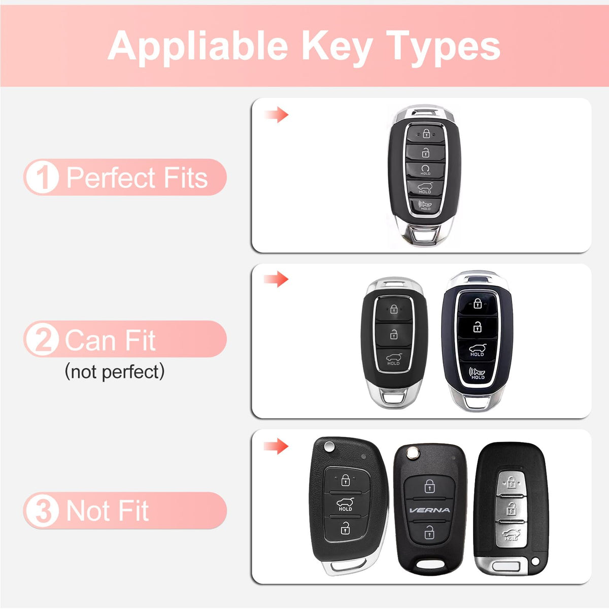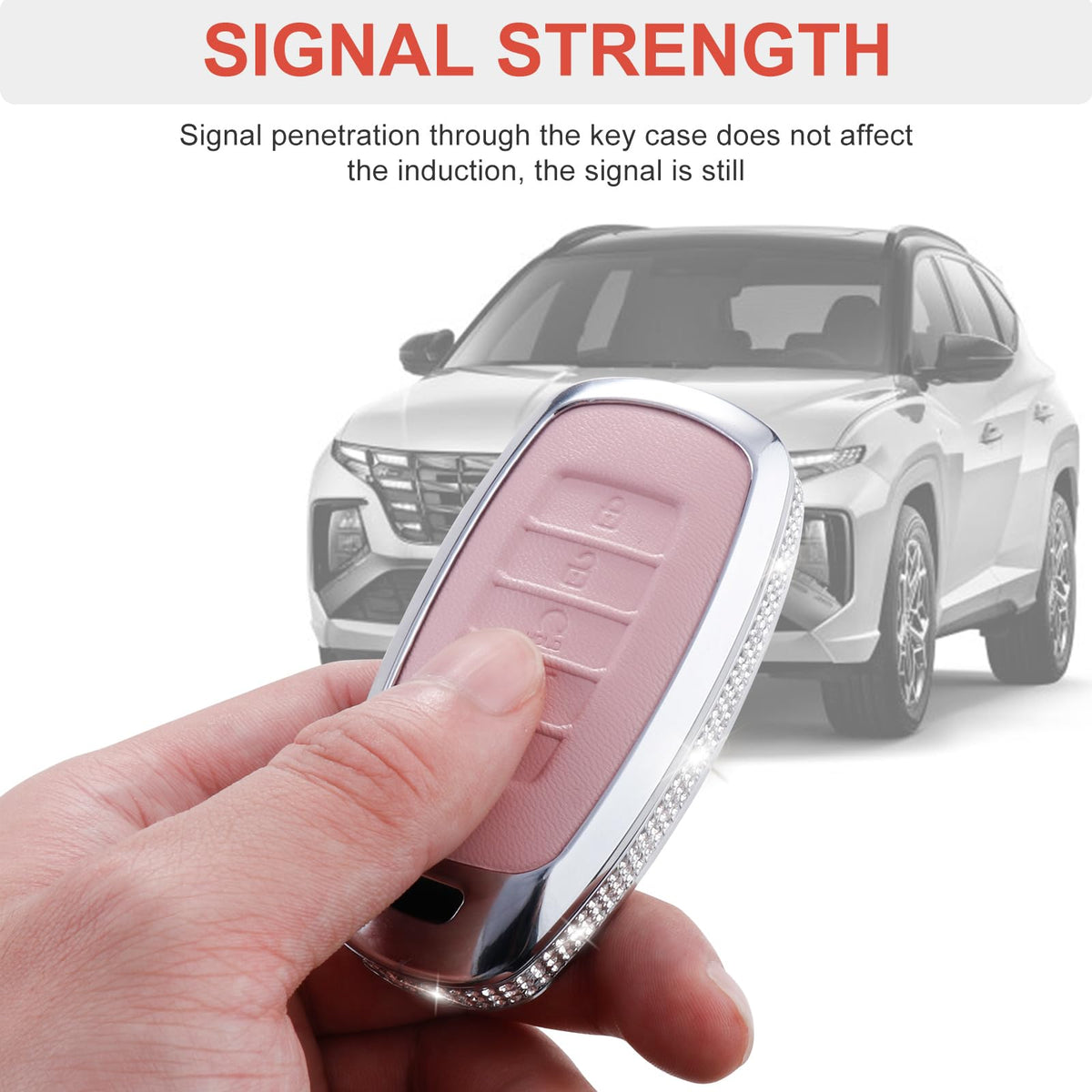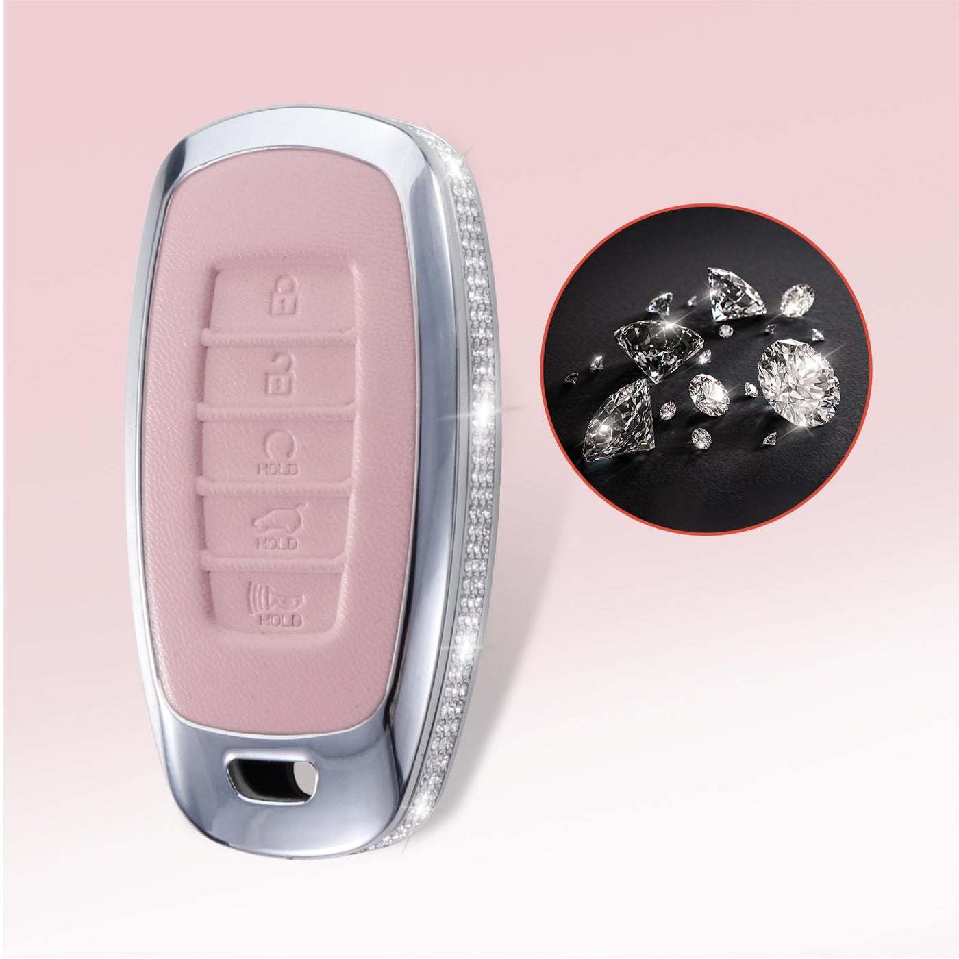 Ruabiban For Hyundai Key Fob Cover With Keychain, Pink Leather Key Case Protection Shell Fit For 2022 2021 2020 Hyundai Sonata S