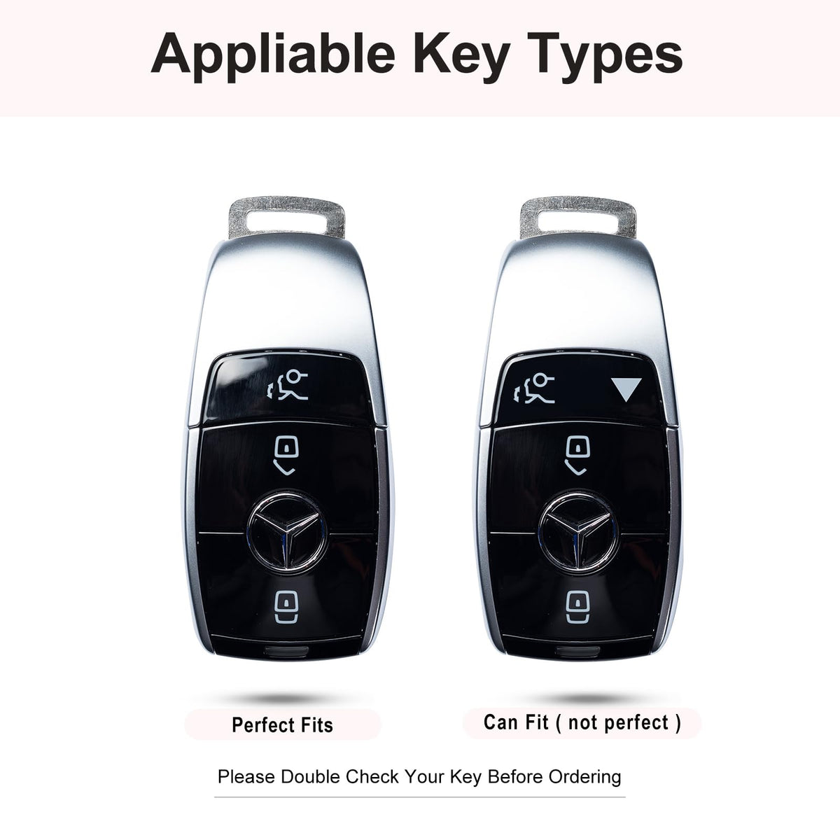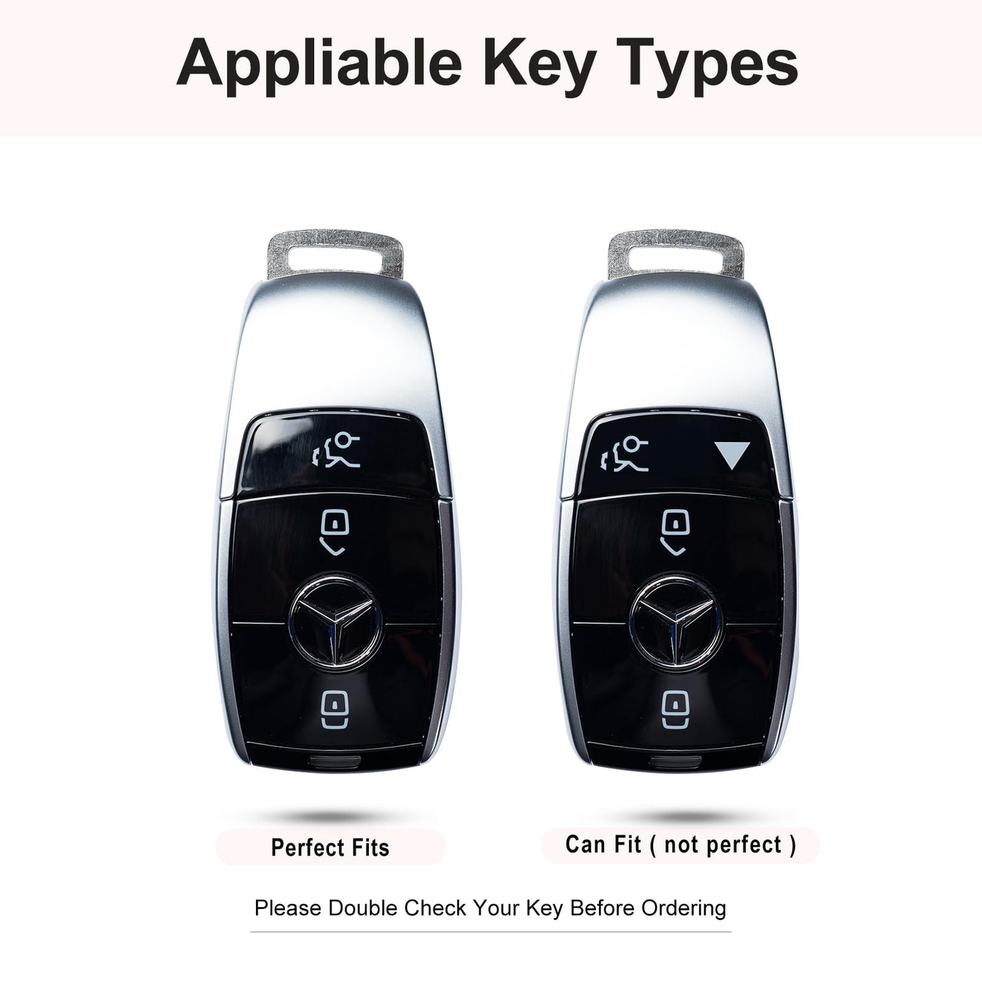 For Mercedes Benz Key Fob Cover with Keychain, Pink Genuine Leather Crystal Key Case Protection Shell Compatible with Mercedes A C G E S Class Remote Start