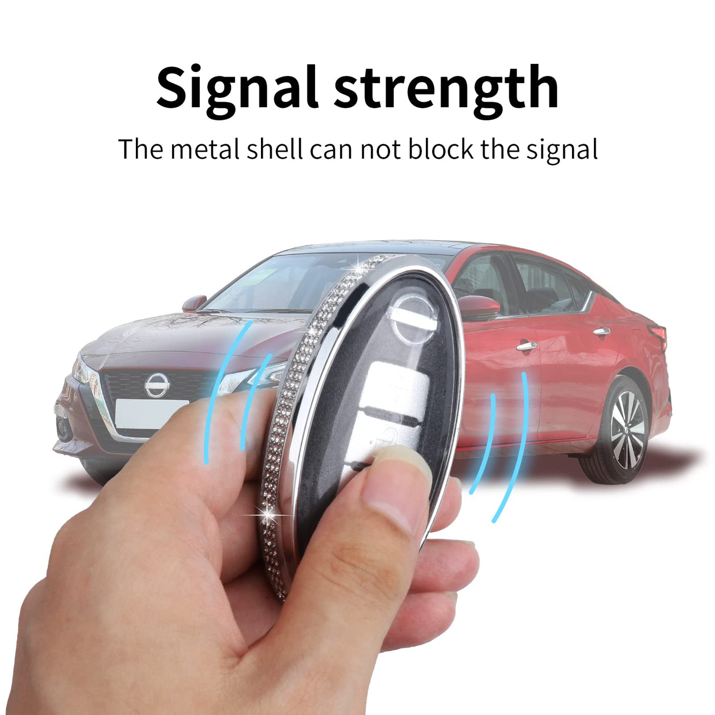 Ruabiban For Nissan Key Fob Cover With Keychain, Pink Leather Crystal Key Case Protection Shell Compatible With Nissa 5 Buttons