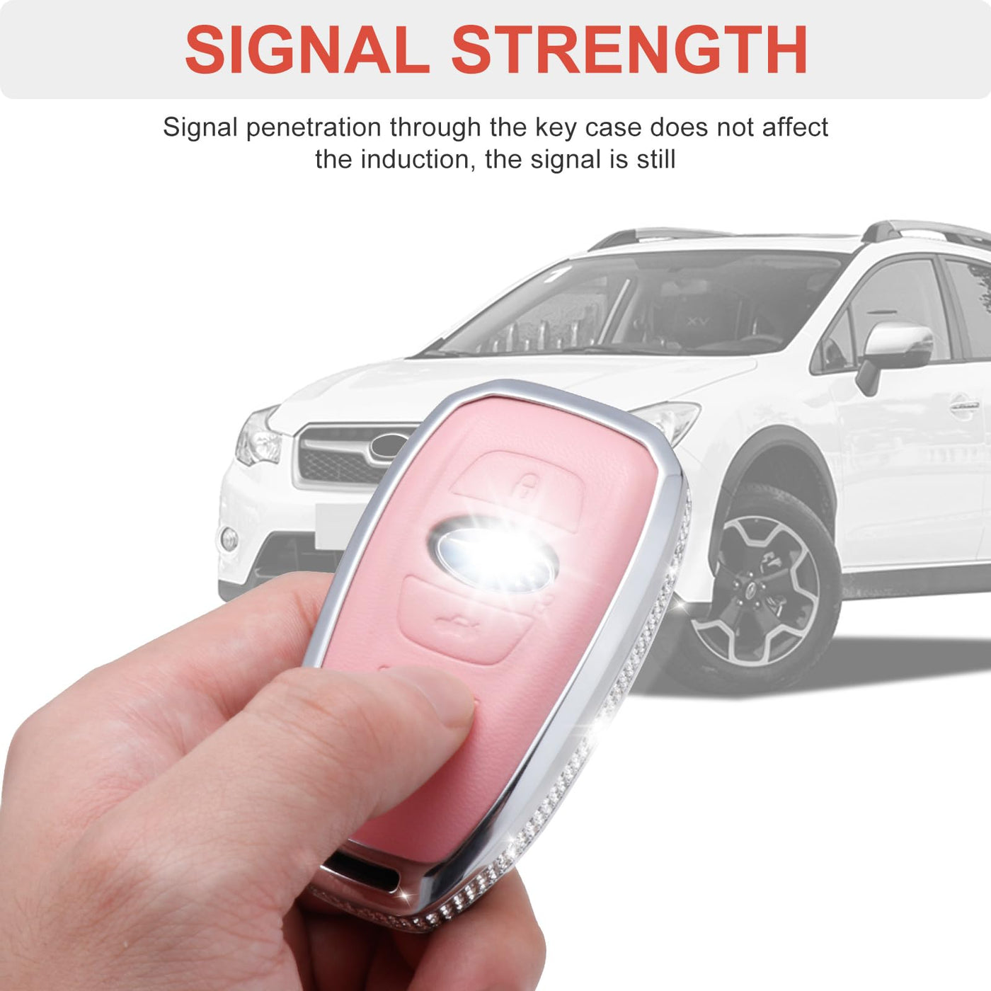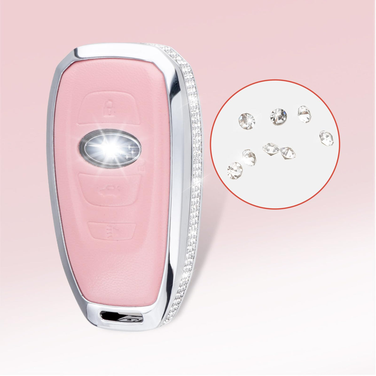 Ruabiban For Subaru Key Fob Cover With Keychain, Pink Leather Key Case Fit For Ascent Brz Crosstrek Forester Impreza Legacy Outb