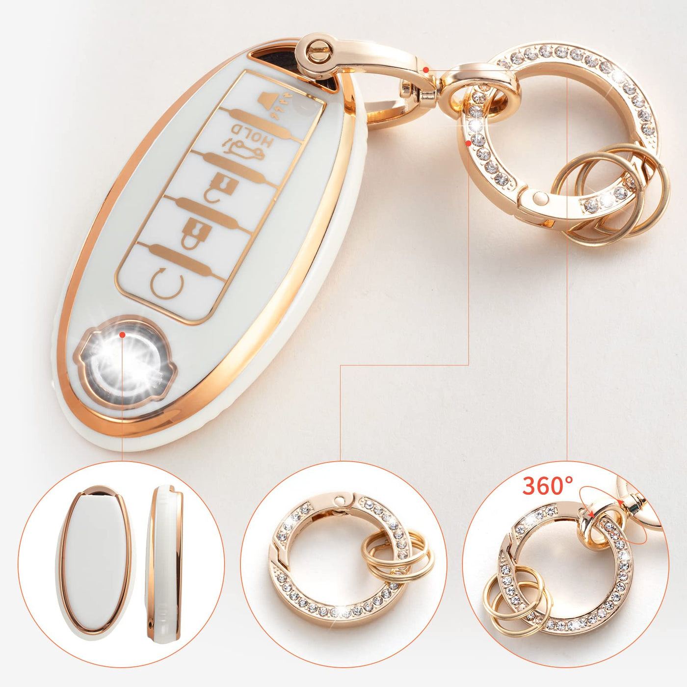 RUABIBAN Key Fob Cover Compatible with Nissan, Soft TPU Key Case Shell Fit for Altima Rogue Sentra Pathfinder Frontier Maxima Ti