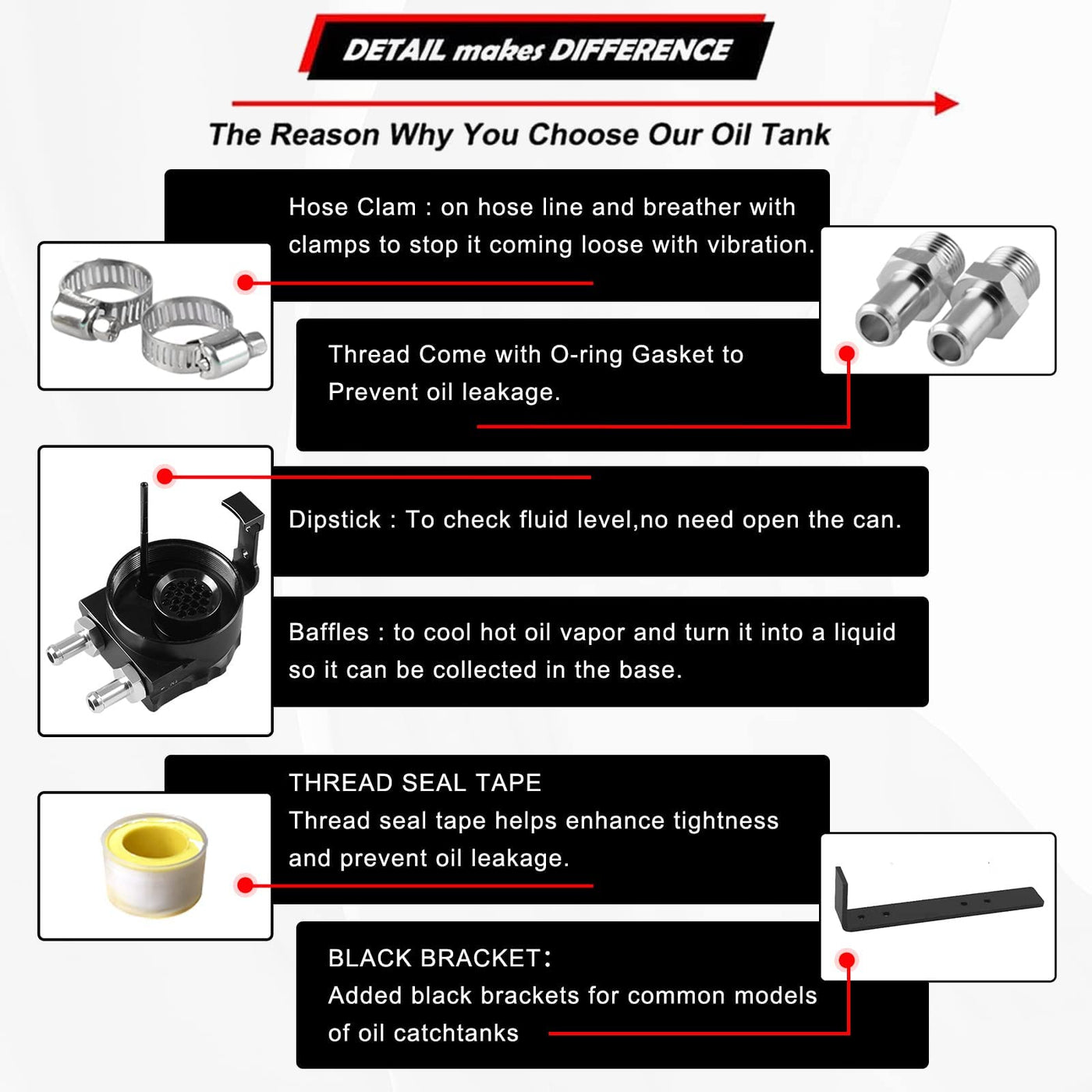 Rulline Universal 350Ml Reservoir Tank Oil Catch Can Tank 0046 Aluminum Polish Baffled Reservoir With Bracket Black