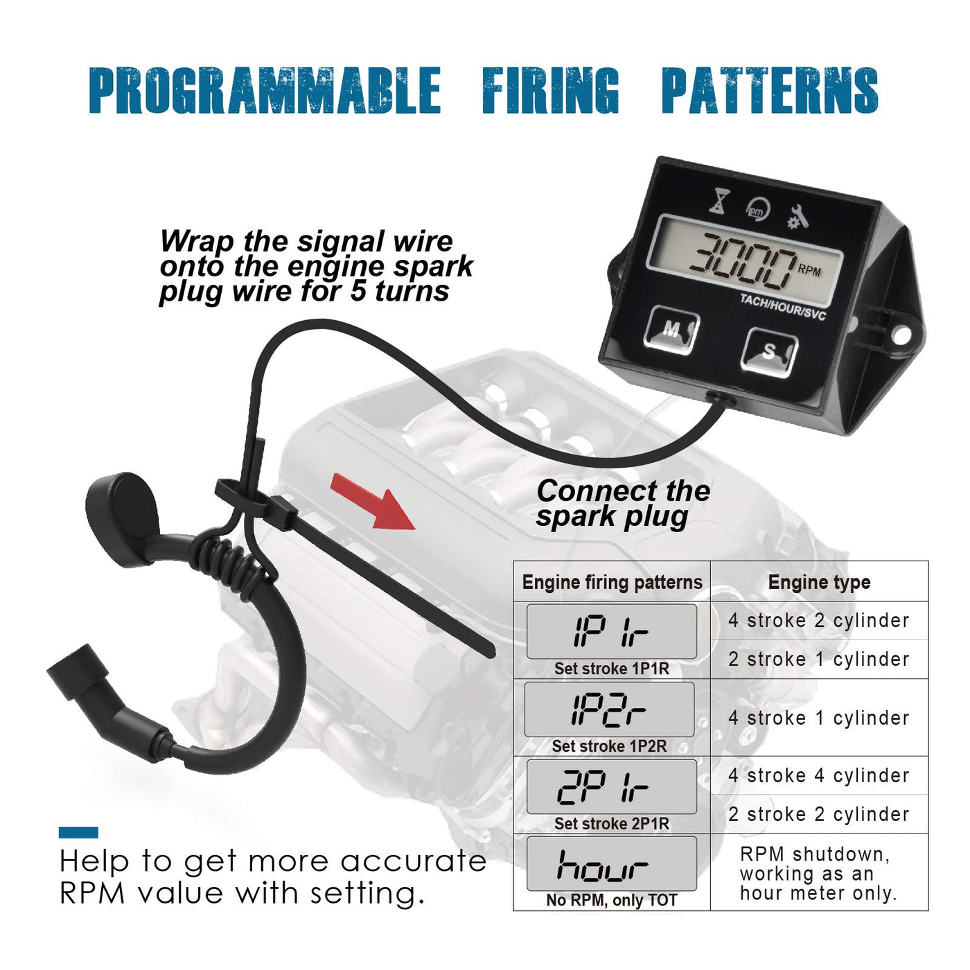 Runleader Digital Hour Meter Tachometer, Maintenance Reminder, User Shutdown, Use For Ztr Lawn Mower Tractor Generator Marine Outboard Atv Motor Snowmobile And Gas Powered Equipment (1)