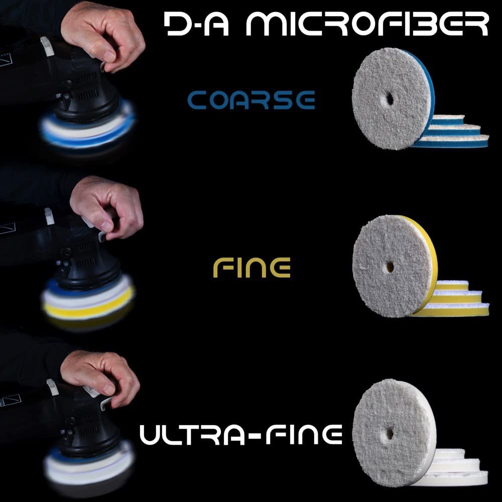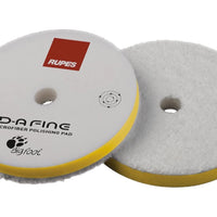 Q: What makes the RUPES Fine D-A Microfiber Polishing Pad different from other polishing pads?A: The RUPES Fine D-A Microfiber Polishing Pad features specialized microfiber material bonded to a semi-flexible foam backing, which allows for better control and contouring over varied panel shapes, providing an ideal balance of cutting and finishing ability.