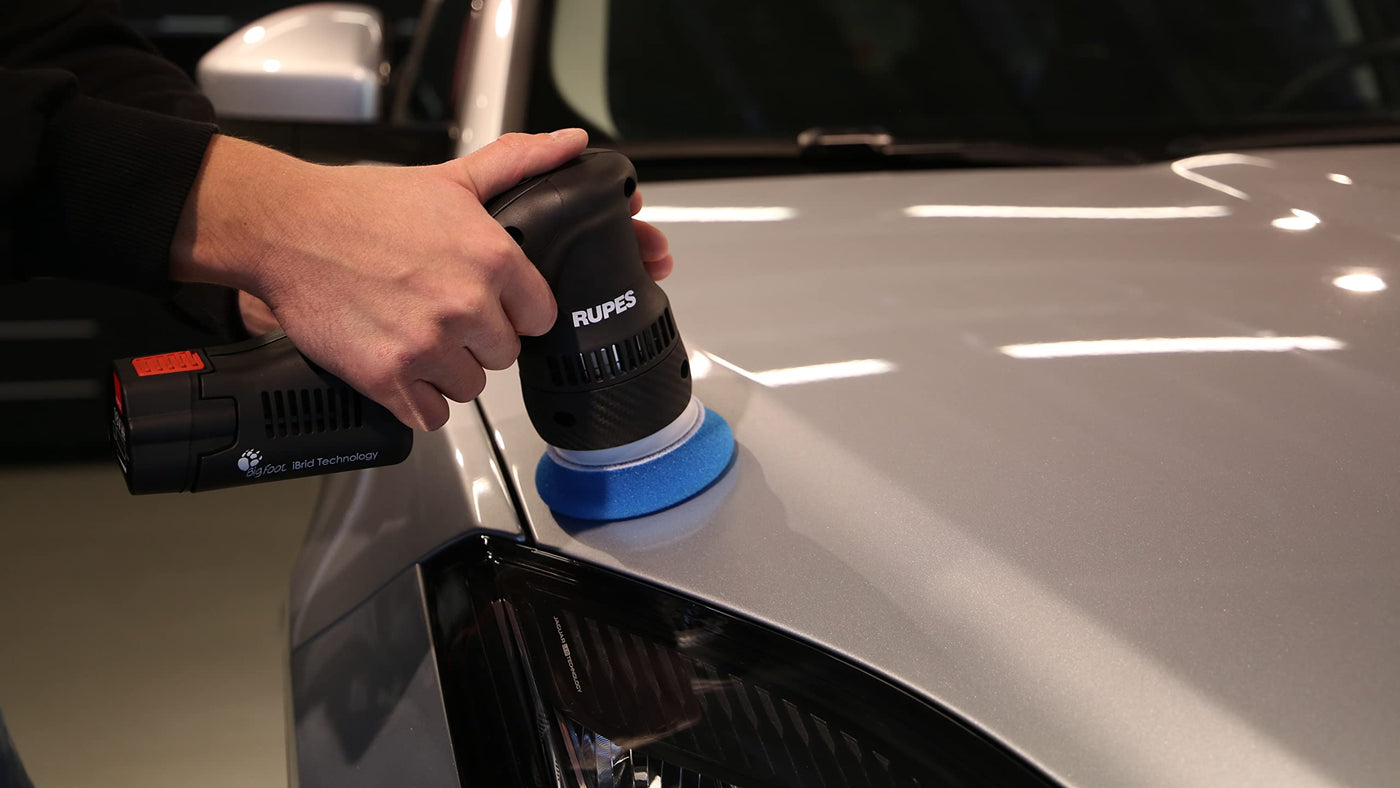 Q: What makes the RUPES iBRID MINI polisher ideal for intricate areas?A: The RUPES iBRID MINI polisher features a 12mm orbit and a Ø 75mm backing plate, making it perfect for polishing difficult shapes and compact areas where larger polishers may struggle. Its compact design and advanced iBrid Technology enhance versatility and efficiency, allowing for effective polishing on modern car designs.