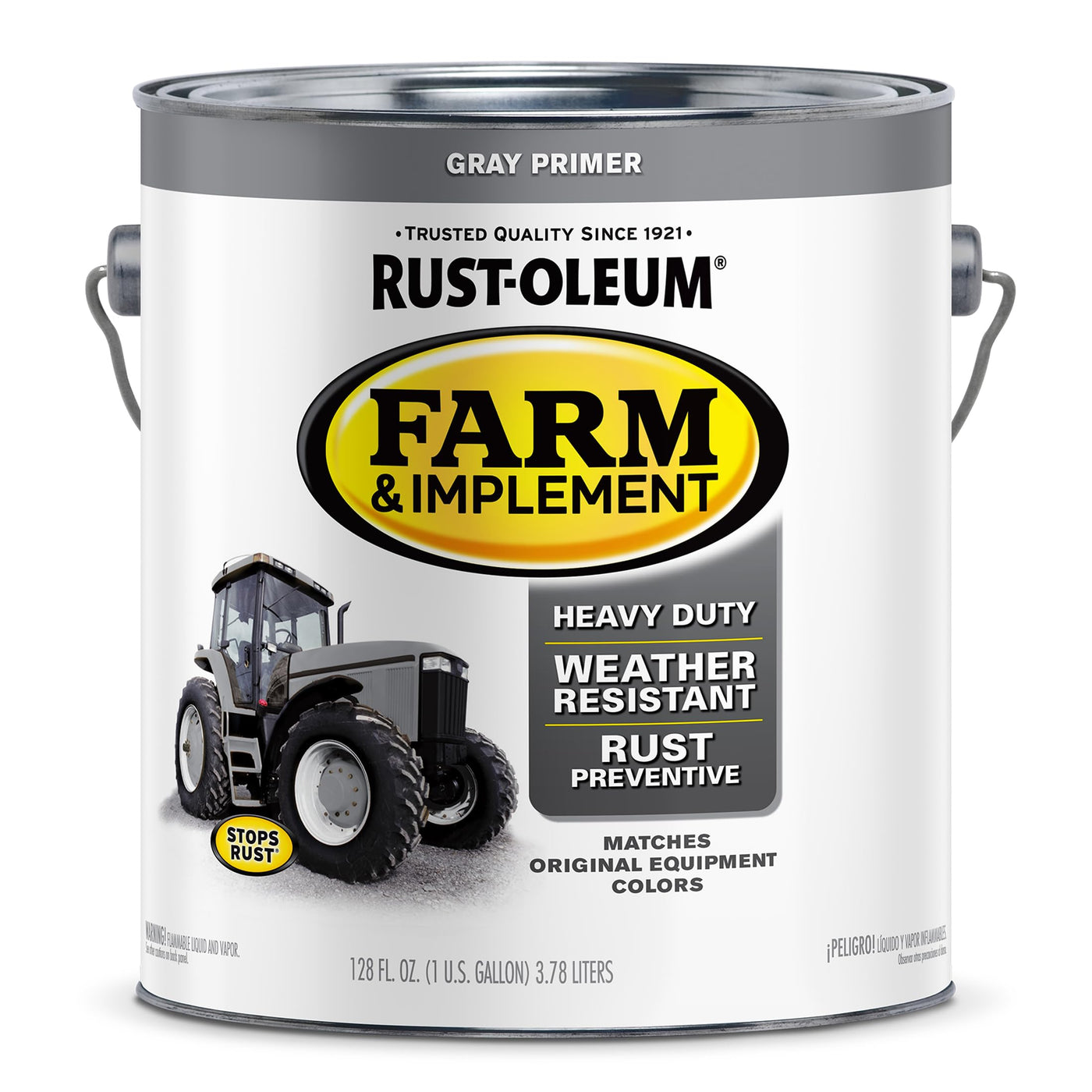 Rust-Oleum Specialty Farm & Implement Gray Primer enamel paint renews and protects valuable equipment with a rust preventative, durable coating. Tough enough for use on tractors, farm implements, trailers, lawn mowers and more, this specialty tractor paint comes in colors that match to major equipment manufacturers. Heavy duty paint is weather- and chip- resistant and offers exceptional color retention to keep items looking like new. Use Farm and Implement on metal or wood - not recommended for galvanized steel.