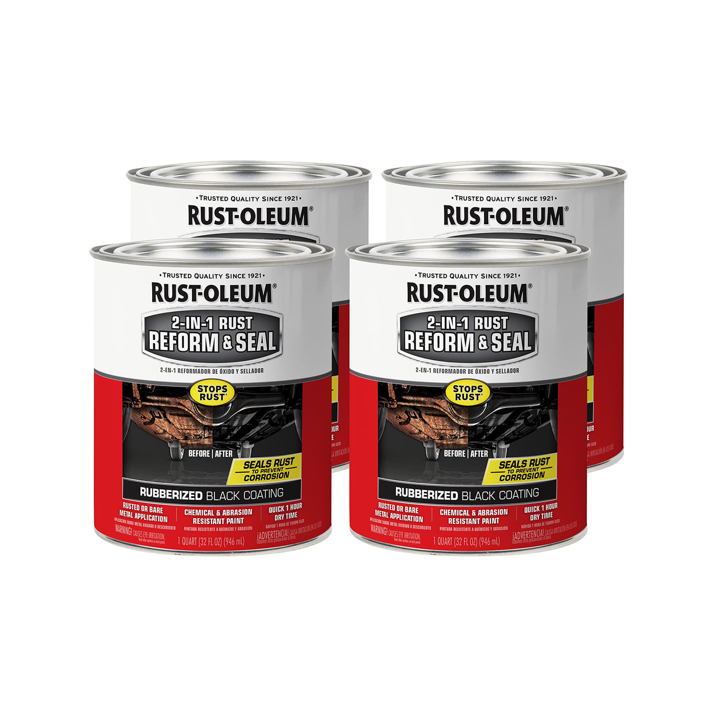 Rust-Oleum 344763-4Pk Automotive 2-In-1 Rust Reform & Seal, Quart, Black, 32 Fl Oz (Pack Of 4)