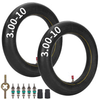 Q: What is included in the package when I purchase this inner tube?A: The package includes two 3.00-10 inner tubes, five valve covers, one valve core wrench, and two aluminum alloy valve caps for complete convenience.