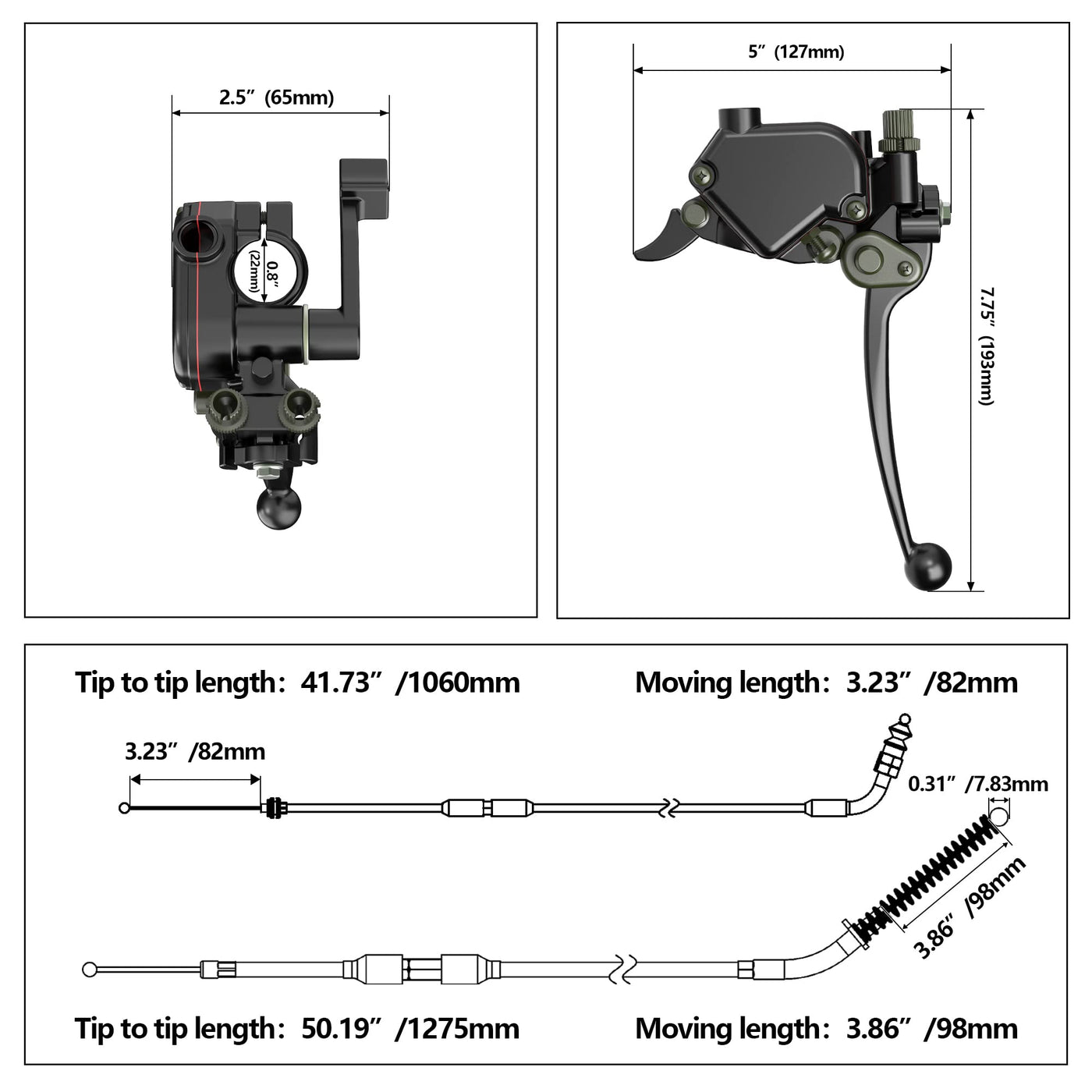 RUTU ATV Thumb Throttle & Brake Cable Kit - Full Metal Speed Governer with Brake Lever - Speed Limiter for 50cc, 90cc,150cc,250c