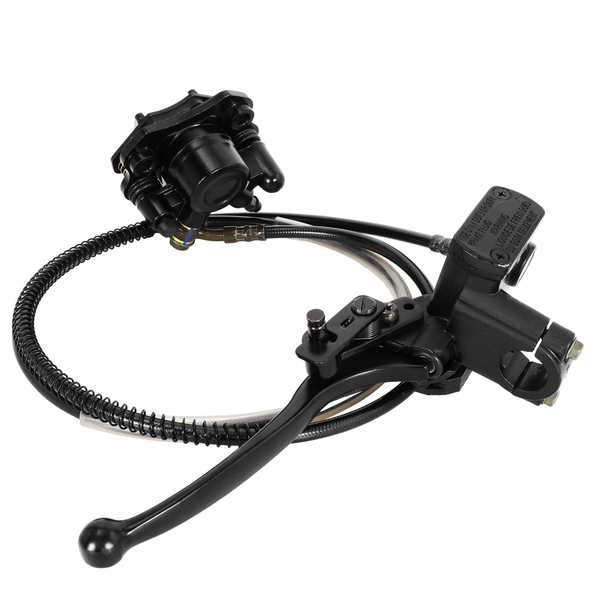 Rutu Brake Master Cylinder Caliper Left Hand Rear Mini Bike Brake Kit, 53' Brake Hose Brake Pads 160Mm Disc Brake, Compatible With Kazuma Roketa Bms Taotao 50Cc, 70Cc, 90Cc, 110Cc, 125Cc Atv, Black