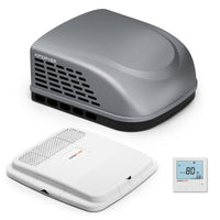 Air Conditioner - RV air conditioner for most RV models. Easy to install, the package includes an adjustable air distribution box, ADB, and thermostat control kit and instructions. Main body dimensions: 29.5'' x 27.'' x 14.2''. Standard opening size: 14''x 14''. High Efficiency Refrigeration RV Air Conditioner - This unit is equipped with a professional grade air compressor. The R410A refrigerant and 15,000 BTU dual shaft motor work simultaneously to deliver cool or warm air to the interior of the RV faster. The 15000 BTU motor can cool a 36'' trailer in less than 10 minutes. Durable RV Air Conditioning Unit - The shell is made of ABS material with good resistance to deformation and with UV (deep ultraviolet) resistant material to prevent aging due to sunlight exposure. The internal air duct is wrapped with EPP foam to keep the heat in while preventing rain and dust from entering the air duct. ADB air duct design and adjustable air direction bring you the best user experience and meet all your needs for RV air conditioning! Provide Quality Service - This air conditioner operates at 115V and 15.5A, most RVs can provide this required power supply. It effectively removes moisture from the RV during damp mornings in the forest. When combined with the RV electric fireplace, it creates a cozy winter experience.