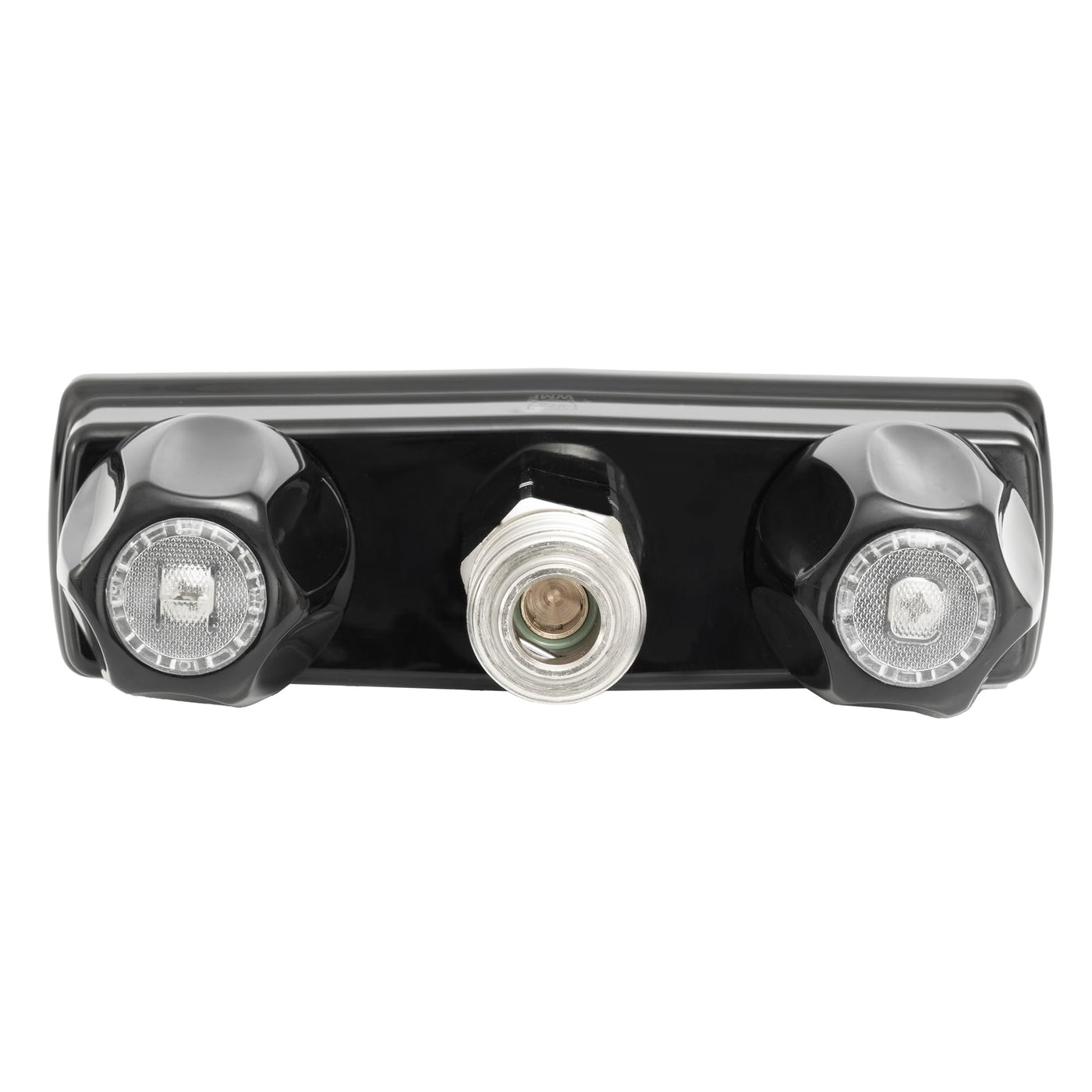 Details: Faucet Colors: black or white Dimensions: 6 1/4 W x 2 1/8 H x 5 1/4 L Material: metal With quick-connect valve Used primarily in outdoor kitchens or water supply stations thread hook-ups 2 shank Details: Flex Spout Flexible outlet Brass connector Durable food-grade rated plastic Dimensions: 14 x 1 x 1 Color: black