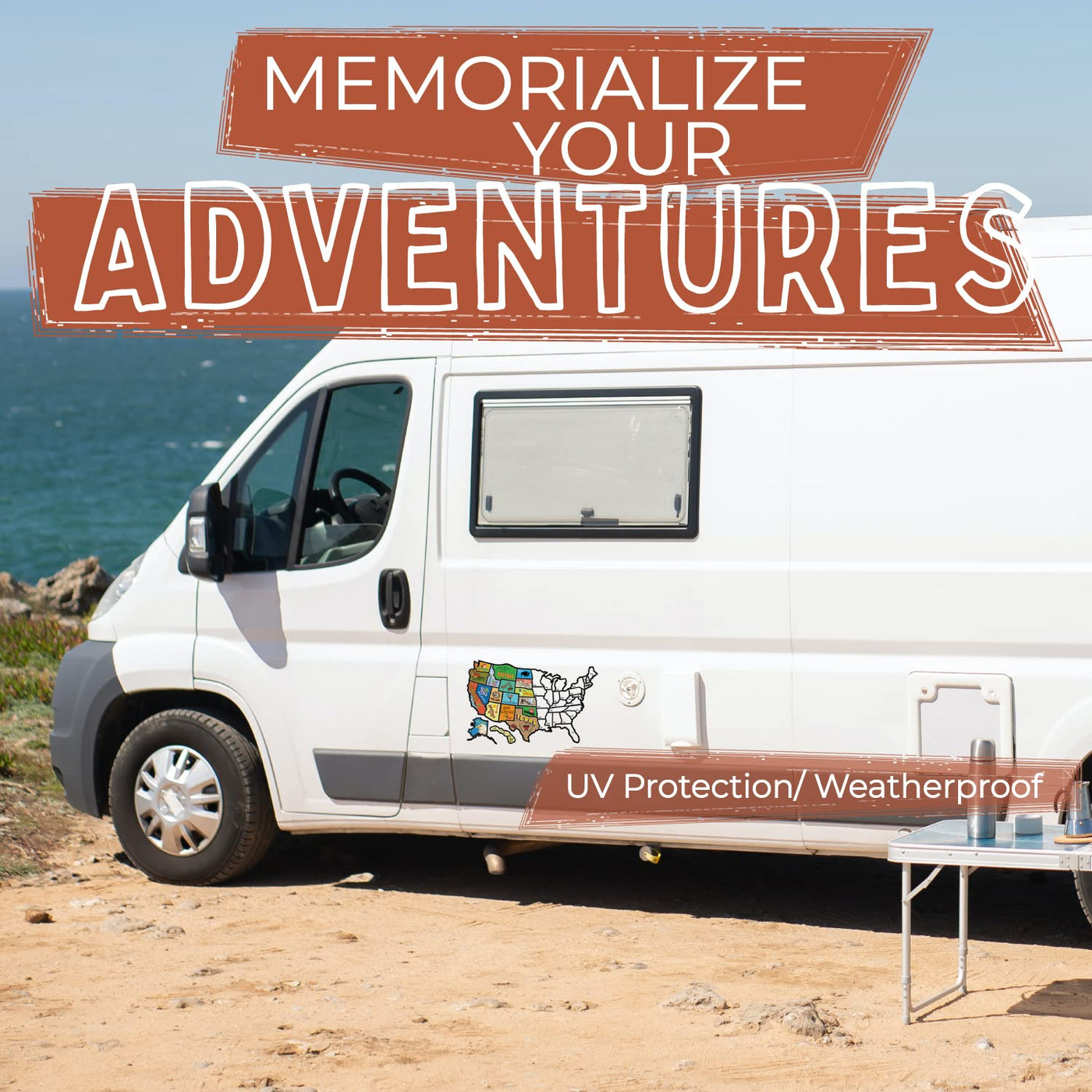 Rv State Travel Usa Map Vinyl Sticker - Camper Trailer Decals For Window With State Flag - Road Trip Map Of America - Waterproof