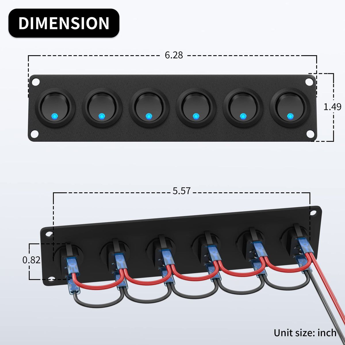 Rvboatpat 6 Gang Rocker Switch Panel 12V Round Toggle Switch Panel 3 Pin Blue Led Lighted 12 Volt Dc 20A Spst On-Off Switch For Marine Boat Car Utv Truck Rv
