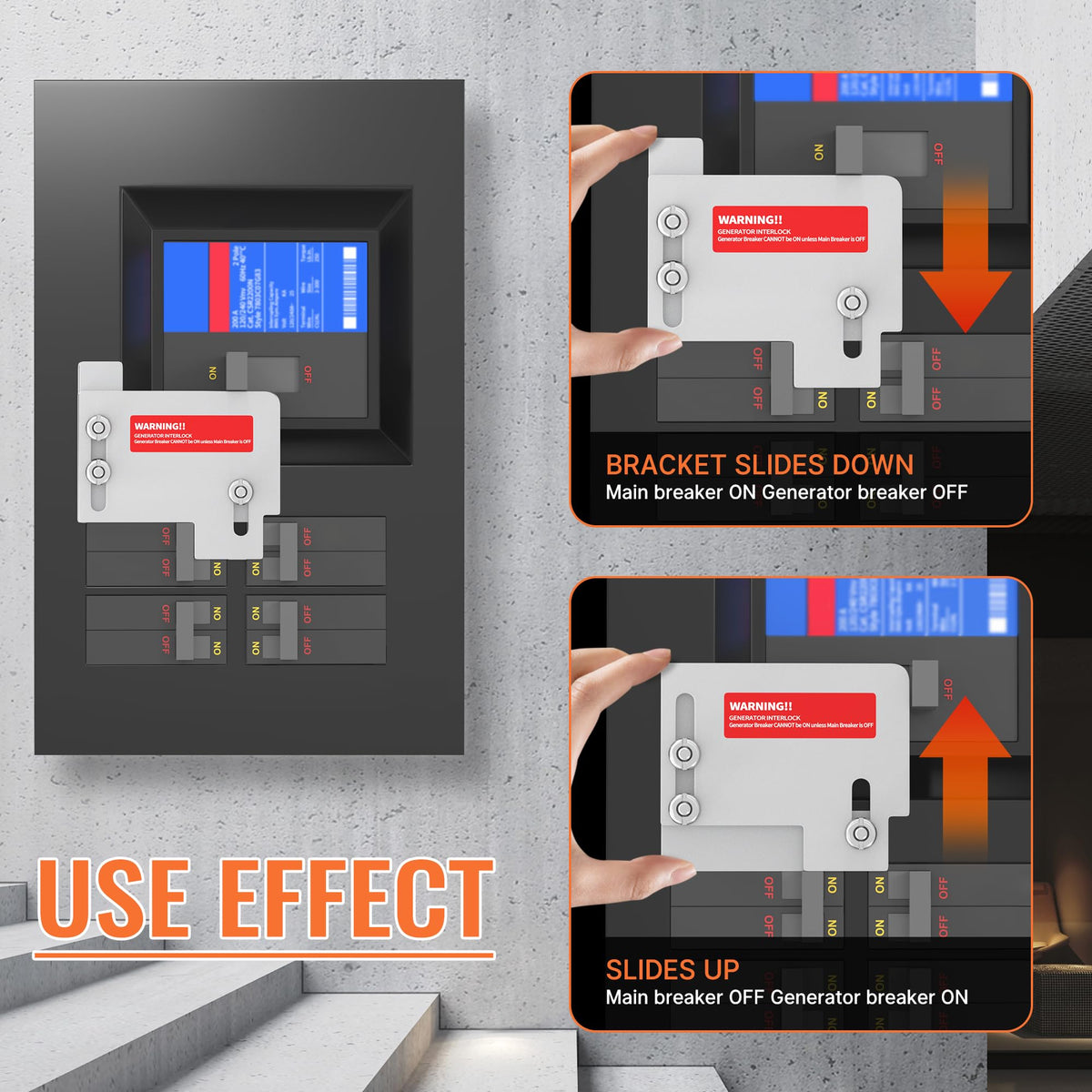 Compatible With: The generator interlock kit is designed to work seamlessly with Horizontal Main Cutler Hammer CH series 150 or 200 amp panels ONLY.What You Get: Breaker interlock kit comes with everything you need to get started, including 2 x interlock plate, 1 x drill bit, 4 x screws kits, 2 x zip ties and 1 x installation instructions.Product Quality: The household circuit breaker interlock switch is anodized, which has excellent corrosion resistance and insulation. The uniquely designed screws and nuts have high friction, will not be easily separated, which is durable and not easy to get rusted.Easy Installation: 1-1/2 inch gap between the main breaker and the generator breaker. The interlock kit is specially designed for easy installation, featuring a drill bit capable of easily penetrating your breaker panel.Safe: The professional interlock kit enables you to safely direct generator power to any circuit in your home, preventing the inconvenience of unexpected power outages and ensuring access to all your electrical appliances.