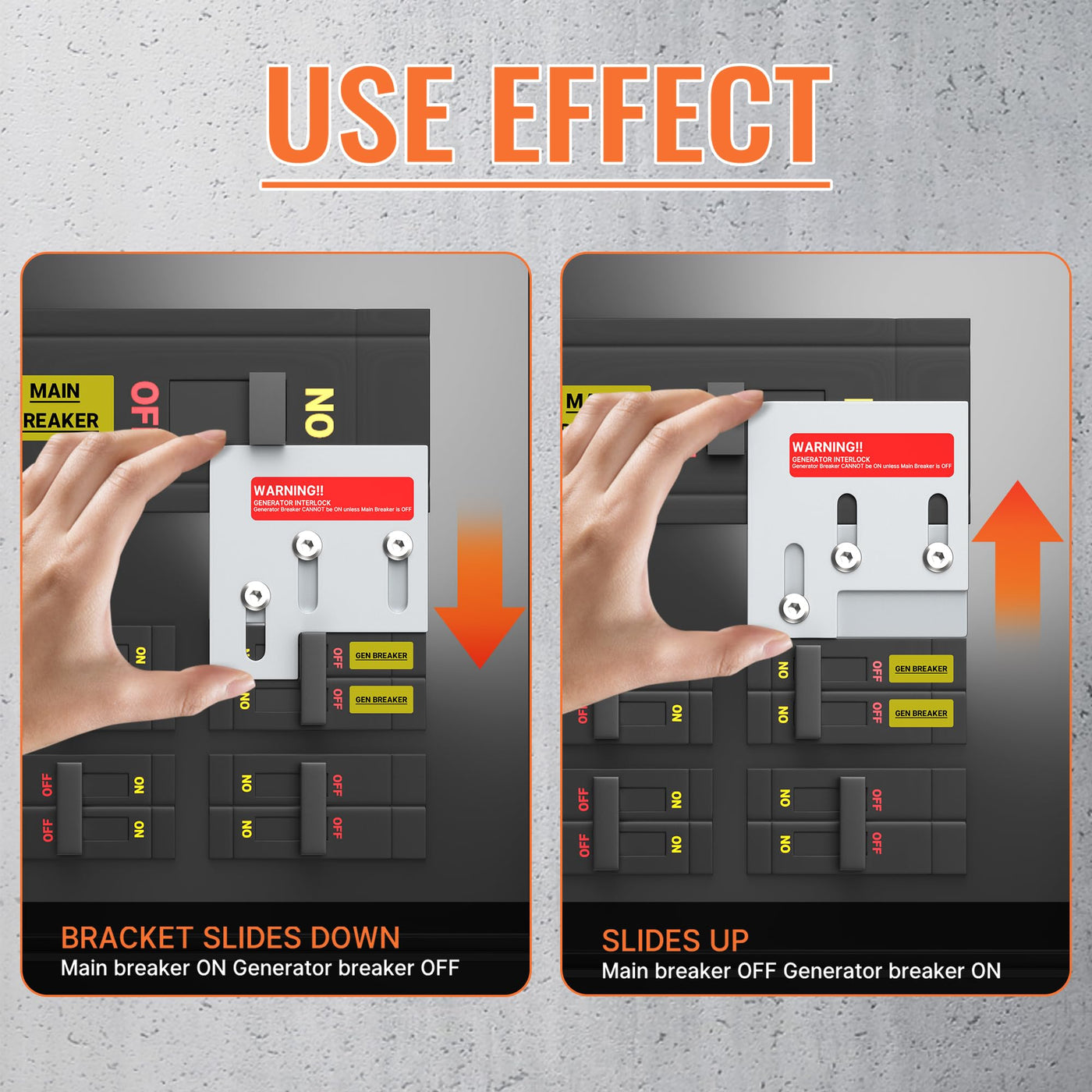 Compatible With: The generator interlock kit is designed to work seamlessly with square D QO or homeliness 150/200 amp panel. What You Get:Breaker interlock kit comes with everything you need to get started, including 2 x interlock plate, 1 x 3/16 'drill bit, 4 × screws and nuts, 2 x zip ties, 2 x hexagon wrench and 1 x installation instructions. Product Quality: The household circuit breaker interlock switch is anodized, which has excellent corrosion resistance and insulation. The uniquely designed screws and nuts have high friction, will not be easily separated, which is durable and not easy to get rusted. Easy installation: 1-3/8 inch gap between the main breaker and the generator breaker. The interlock kit is specifically designed for easy installation, with a 3/16 'drill bit that can easily penetrate your breaker panel. Safe: Professional interlock kit allows you to direct generator power to any circuit within your home safely, avoid the inconvenience of unexpected power outages,ensuring access to all your electrical appliances.