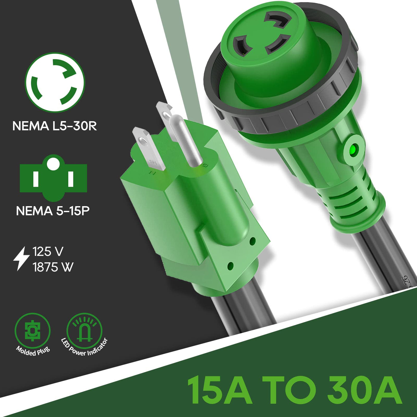 Rvguard 30 Amp To 110 Volt Rv Adapter Cord With Locking Connector 12 Inch, Nema 5-15P To Nema L5-30R Electrical Power Adapter Wi
