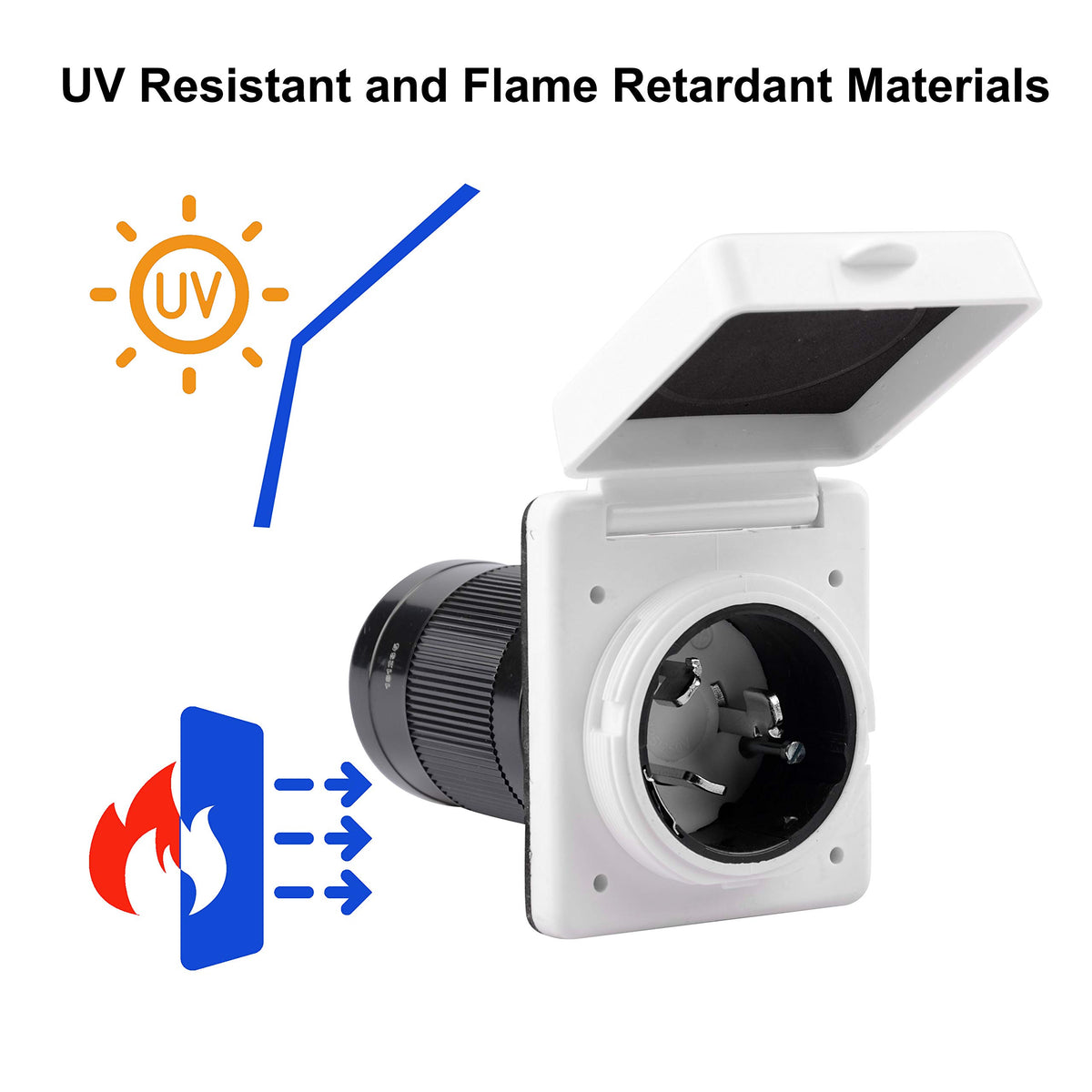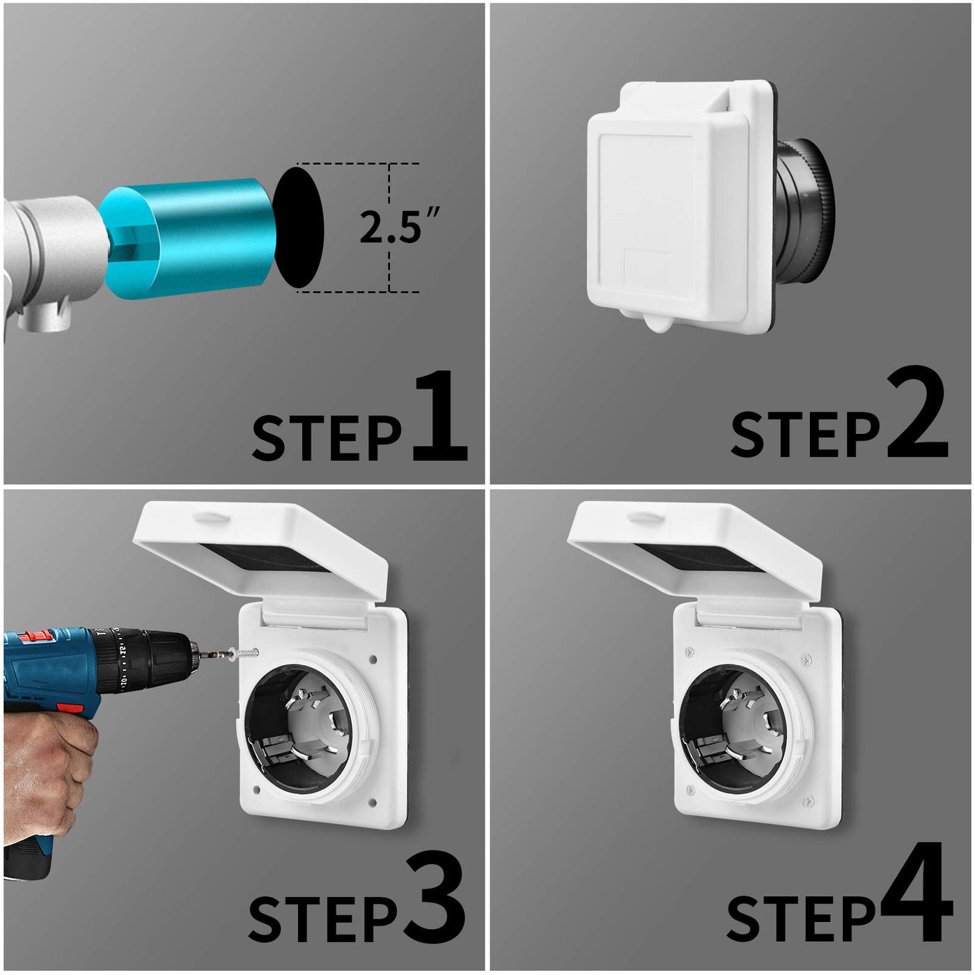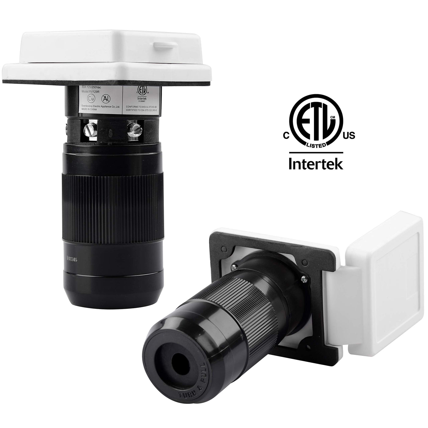ETL APPROVED: 50 Amp 125/250 Volt easy power inlet, NEMA SS2-50P, ETL Approved, safe to use. | Easy To Use: Locks the cord set to the inlet Quickly without any loose or wiggle. Heavy-duty construction. | HIGH-QUALITY MATERIAL: UV-resistant materials and a waterproof power inlet cover make the quality stable. | SIZE: 3.7''Length X 3 .3Wide X 5.5'' high - Cutout 2.3'' and with 4x 8 Pan Head Stainless Steel Screws. | HASSLE-FREE AFTER-SALE SERVICE: If there are any questions or dissatisfaction with our product, please feel free to contact us.