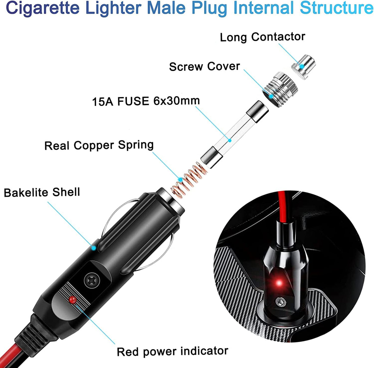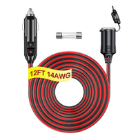 Rwujilong 12V/24V Heavy Duty Cigarette Lighter Extension Cord 12Ft 14Awg With Led Light For Car Vehicle Tire Pump Air Compressor