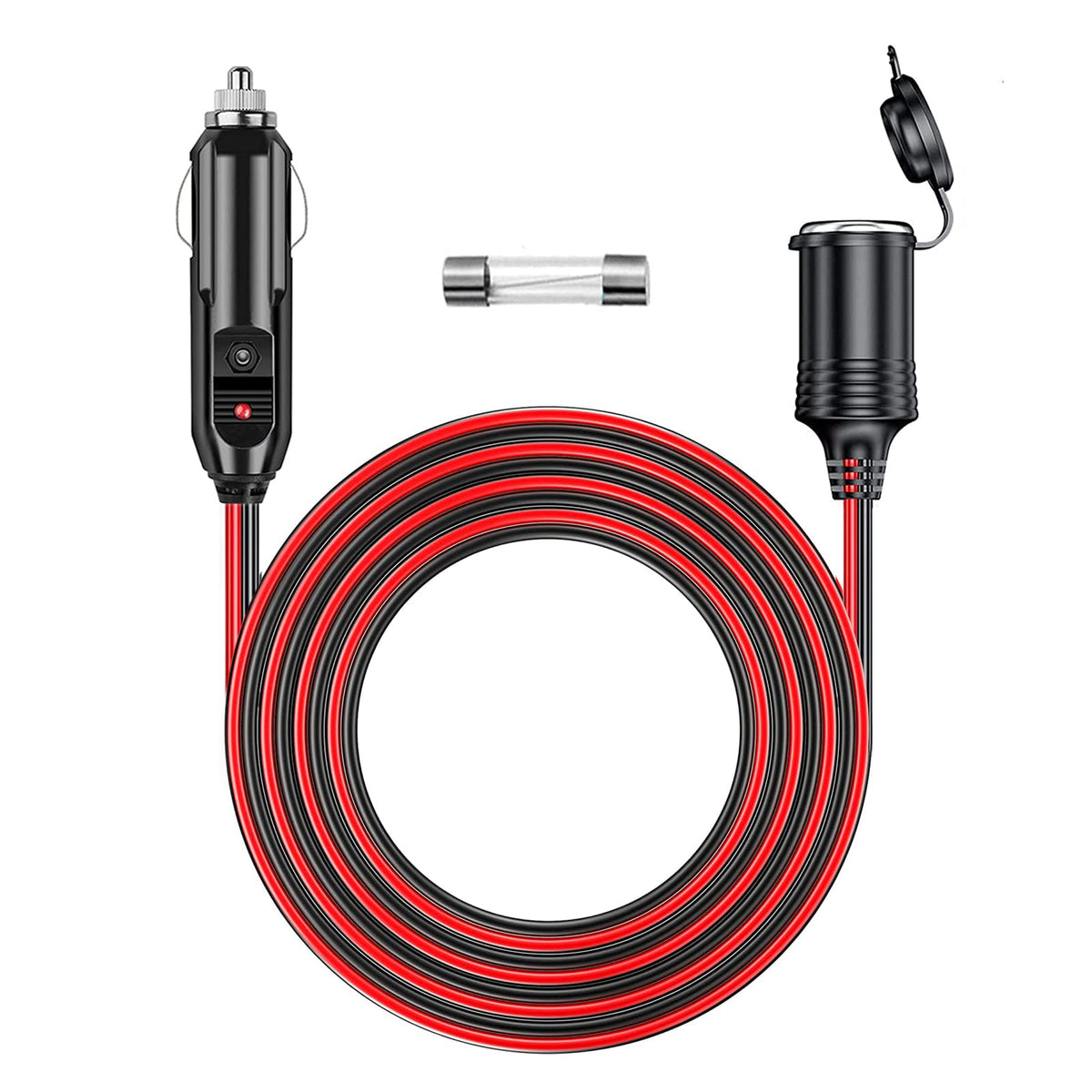 Rwujilong 12V/24V Heavy Duty Cigarette Lighter Extension Cord 6Ft With Led Light For Car Vehicle Tire Pump Air Compressor Refrig