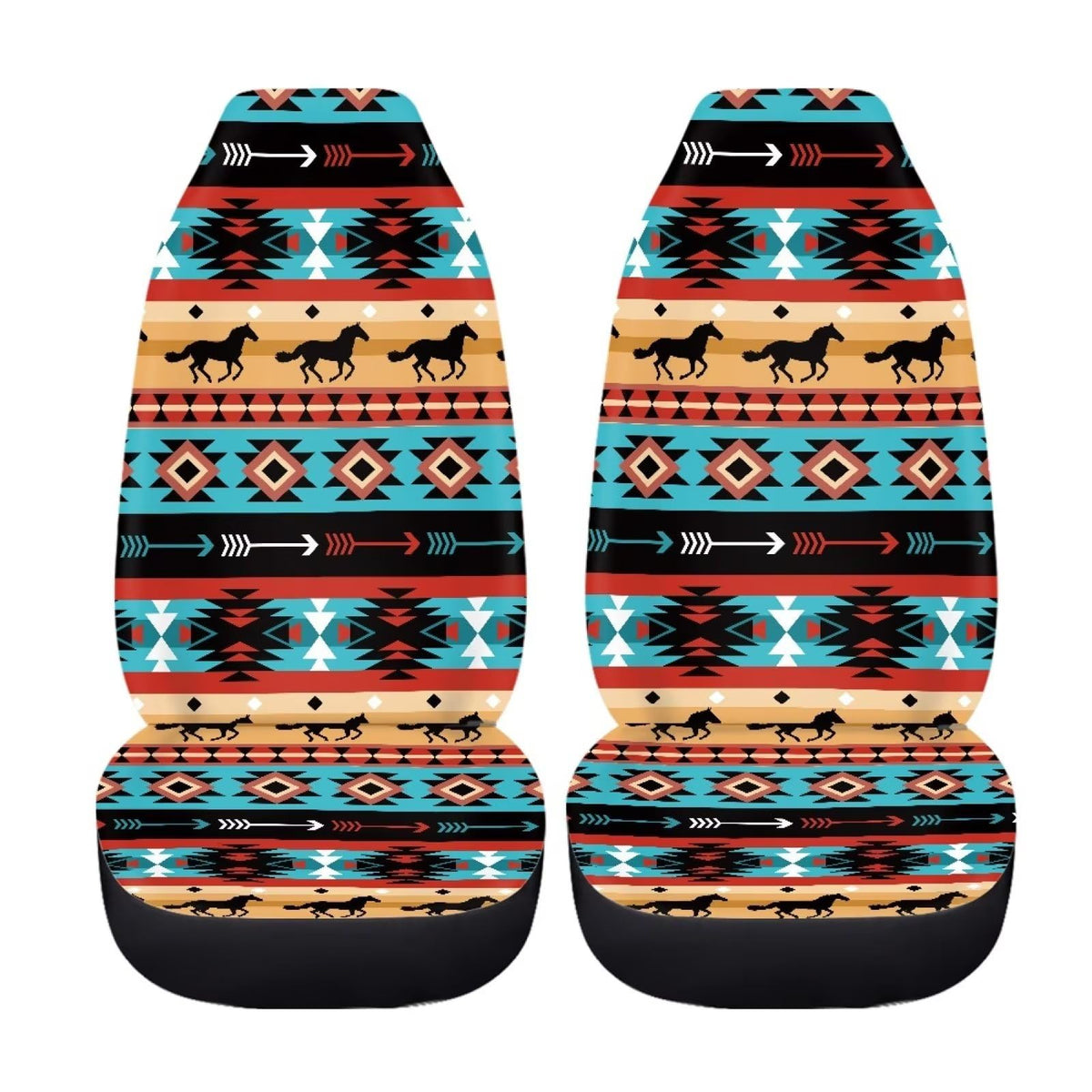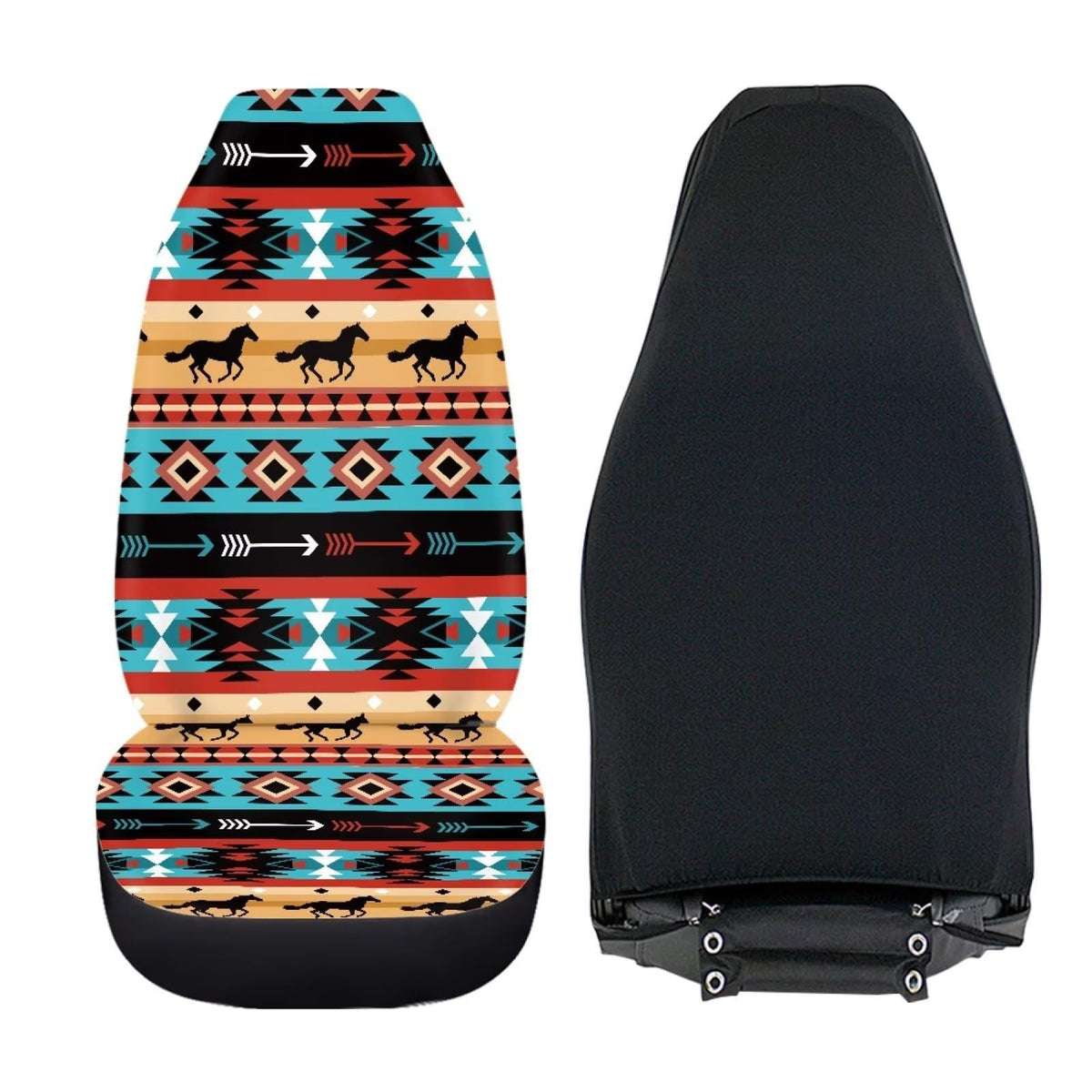 Salabomia Western Horse Car Seat Cover for Women, Aztec Universal Fit 2 Piece Stretchy Breathable Bucket Vehicles Seat Cover Fro