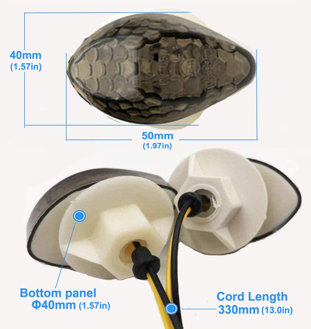 Please check the size before you buy Honda CBR600RR 2003-2012 Honda CBR1000RR 2004-2007 Honda CBR 600 F4 1999-2000 Honda CBR 600 F4i 2001-2006 Honda CBR900 CBR919 Honda CBR929 2000-2001 CBR954 2002-2003 Product details Led quantity: 15pcs each light Working voltage: DC 12V Light color: amber Lens color: smoke 2-wire connection: Yellow for positive, black for negative Super bright and long lasting Quick on/off response time Waterproof Perfect fits for the fairing holes Easy installation, no cutting, drilling or modification required Package Included 1 pair motorcycle turn signals