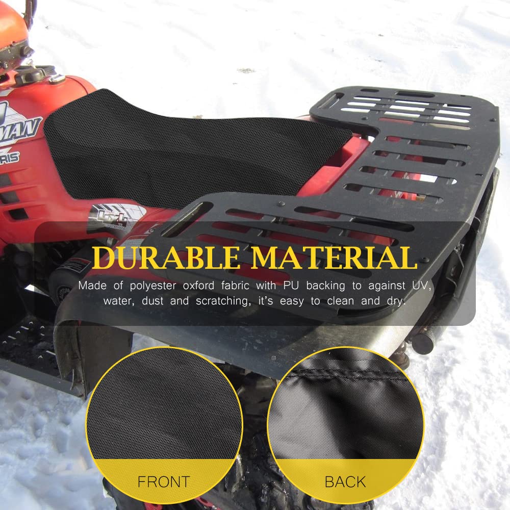 Atv Seat Covers Keeps Your Atv Seat Clean And Dry Durable Polyester Oxford Fabric With Pu Backing For Waterproof, Dust-Proof Protects Seat From Dirt, Fading And Other Whether And Sun Damage Ideal For Off Road Racing, Wet And Muddy Conditions Elasticized Hem For A Quick Fit Universal Fit For Most Standard Atvs Seat Atv Seat Covers Fitment Compatible With Polaris Sportsman 570 450 850 Compatible With Polaris Scrambler 400 500 850 1000 Compatible With Honda Fourtrax Foreman Rubicon 500 520 Compatible With Honda Fourtrax Foreman 450 500 520 Compatible With Honda Fourtrax Recon 250 Compatible With Honda Rancher 350 400 420 450 Compatible With Yamaha Kodiak 400 450 700 Compatible With Yamaha Grizzly 700 660 600 Compatible With Kawasaki Kfx 400 450 700 Etc Atv Seat Covers Specs Color: Black Material: Polyester Oxford + Pu Package Included: 1 X Atv Seat Cover
