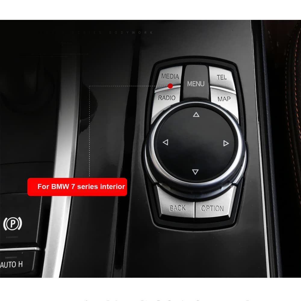 Sanrily Silver Set Of 7 Car Idrive Menu Multimedia Button Cover For Bmw Multimedia Control Knob Cover Sticker Trims Fit For Bmw 5 Series F10 F11, 1 2 Series, 3 Series E90 E92, 4 Series F30 F31,7 X5 X6