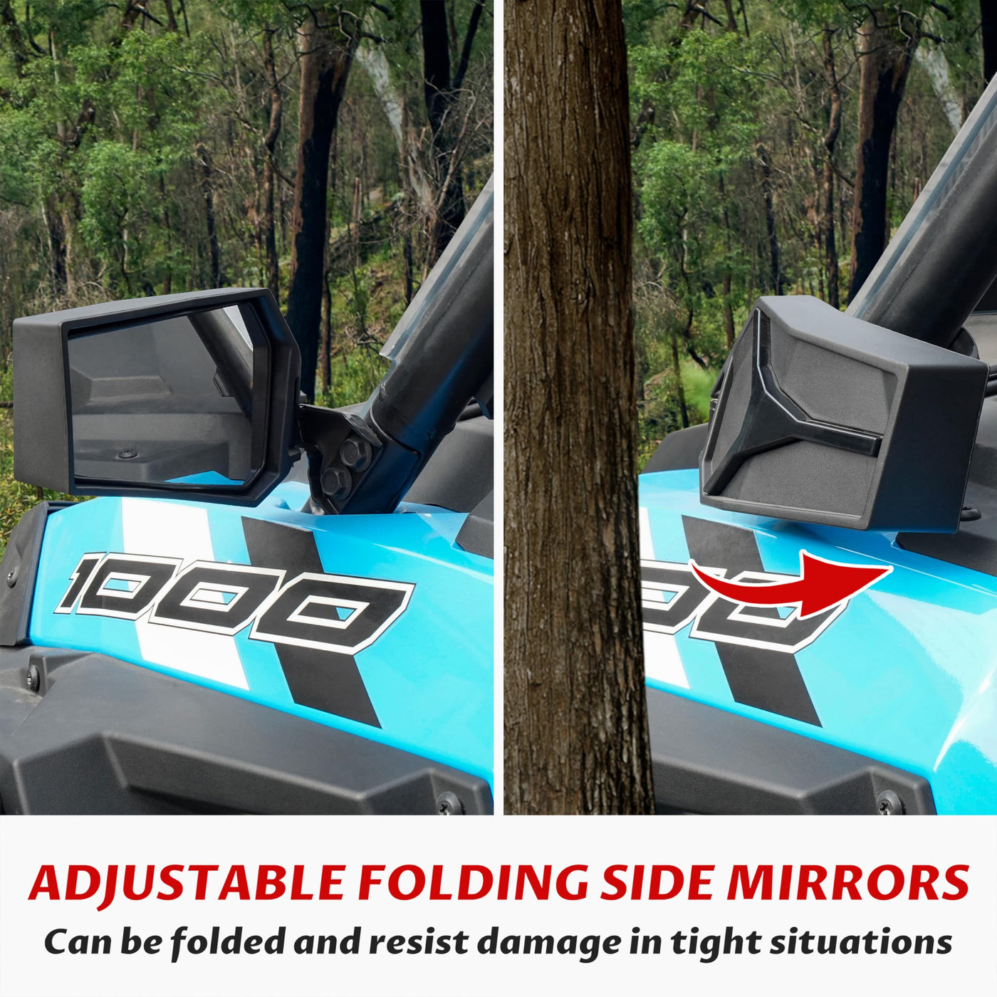 SAUTVS Adjustable Rearview Side Mirrors for Polaris RZR XP 1000 14-23, Folding Clear Rear View Side Mirrors for Polaris RZR XP X