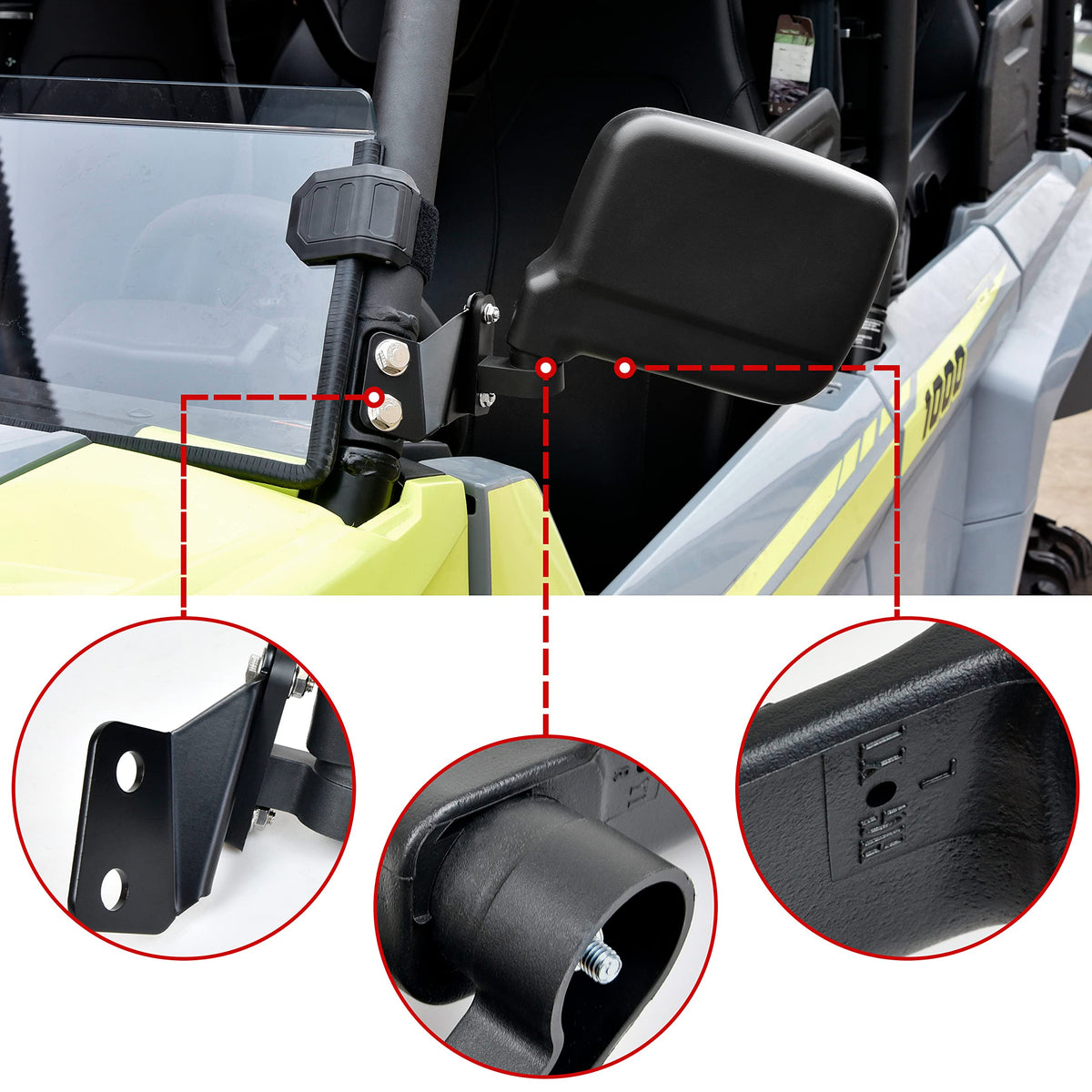 Compatible with: for Yamaha Wolverine RMAX2 1000 2021 2022 2023 for Yamaha Wolverine RMAX4 1000 2021 2022 2023 Package Include: 2pcs folding side mirrors with mount hardware NOTICE: Please refer to the installation video before your installation